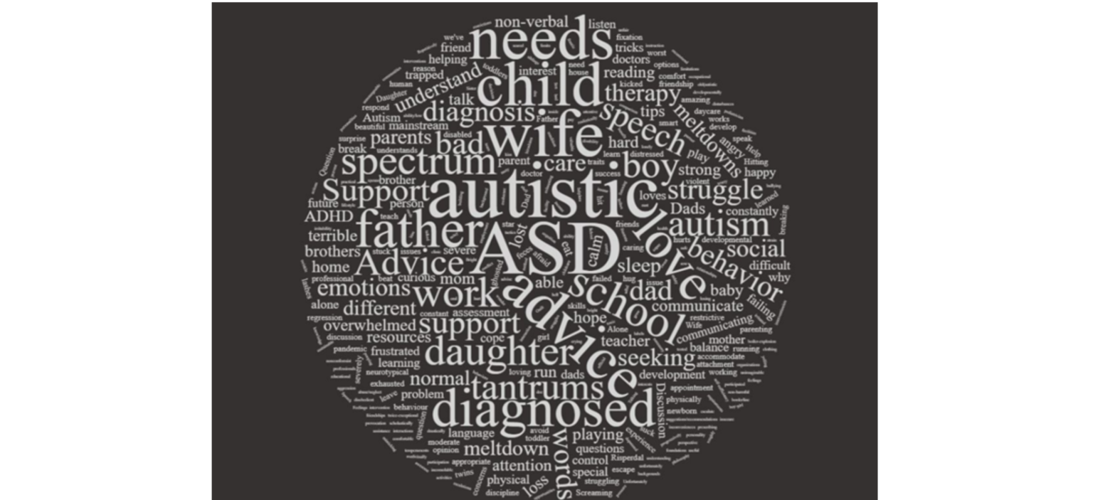 Autistic spectrum disorder (ASD) is a neurodevelopmental disorder defined by social communication deficits, restricted interests, and repetitive behaviours (Hodges et al., 2020).   Fathers have an important part to play in raising children, with paternal involvement improving children’s mental health, academic, social and cognitive outcomes (Cabrera et al., 2000). Parents typically become involved in the navigation of services for their children, and family involvement is critical to positive outcomes of treatment and therapies (Azeem et al., 2016).The often near-constant struggle for resources and treatment for their children is a major source of stress for parents (Davis & Carter, 2008).