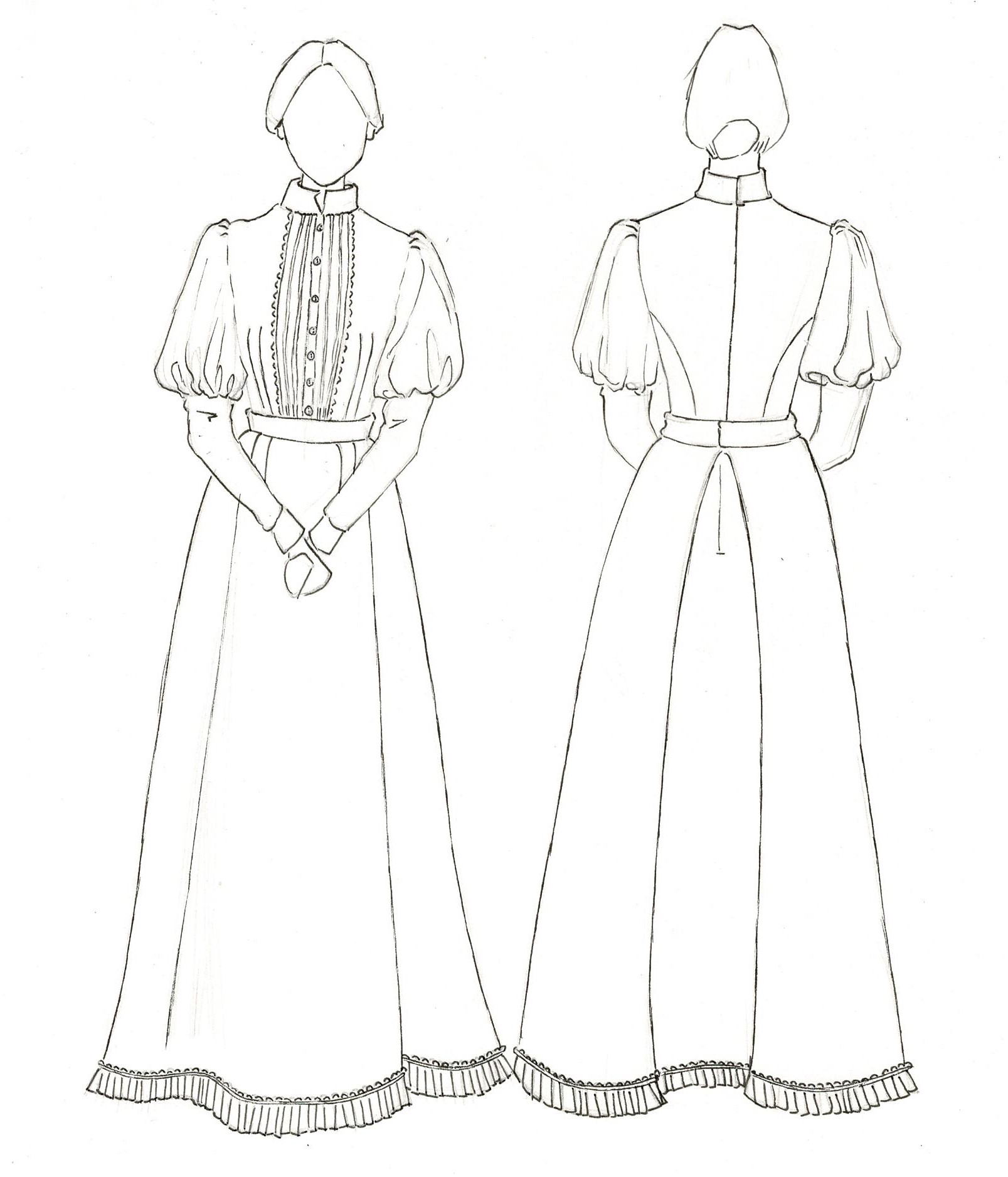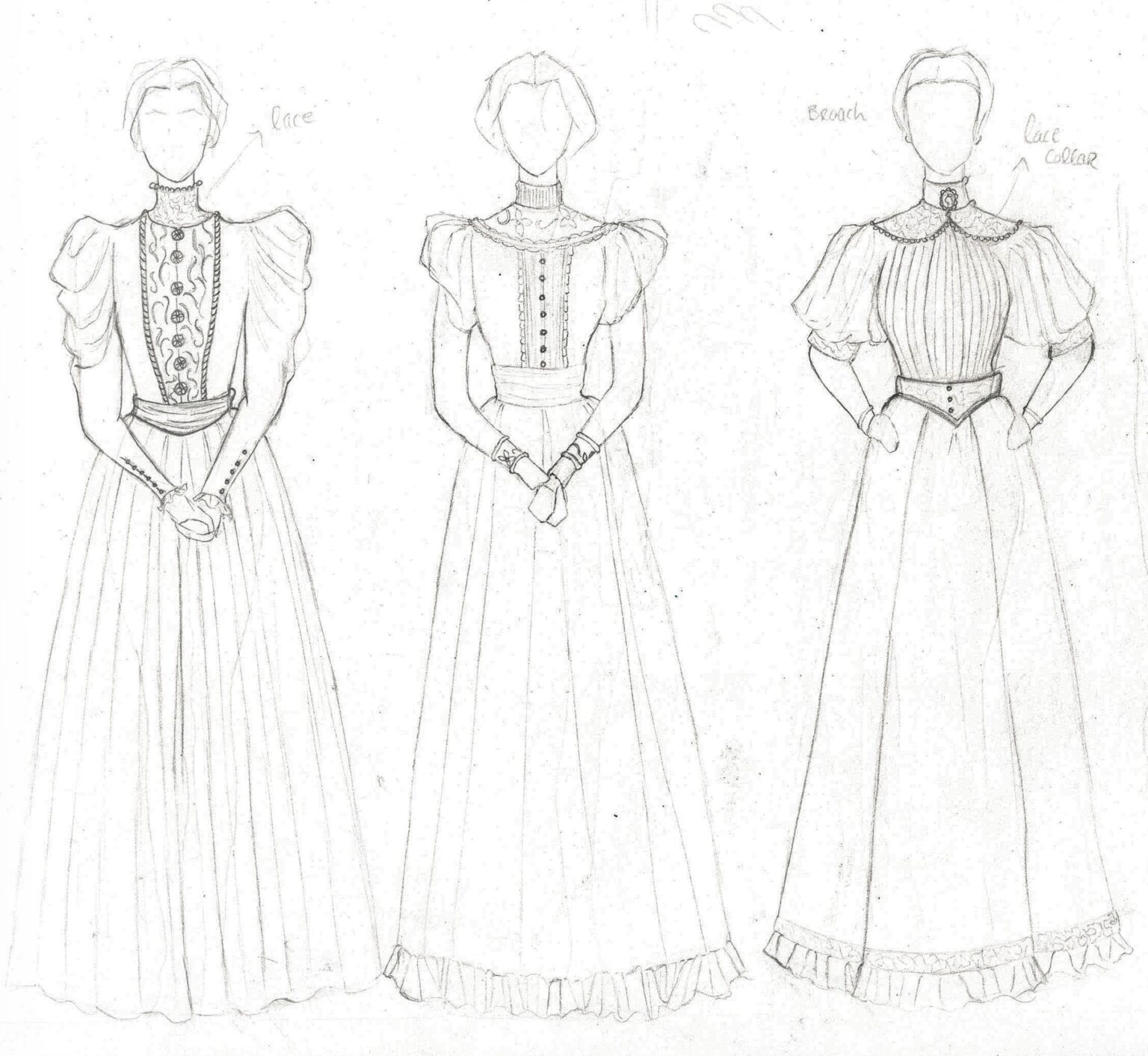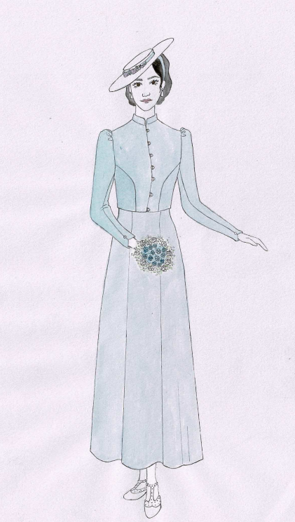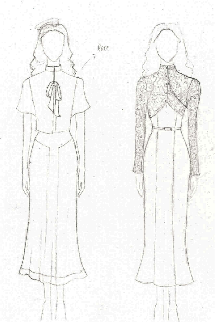 For my Major, I chose Shakespeare's 'Much Ado About Nothing', setting it in 1930's pre-war England. The play revolves around two romantic pairings that emerge when a group of soldiers arrives in town. The first, between Claudio and Hero, is nearly altered by the accusations of the villain, Don John. This conflict is resolved and the two have a second wedding, which is the scene I have designed for. Hero's second wedding outfit signifies the growth that she has experienced in at this point in the story and her coming into her own. She no longer is looking to others to decide who she should be and shows grace in forgiving Claudio and choosing to love him on her own terms.
