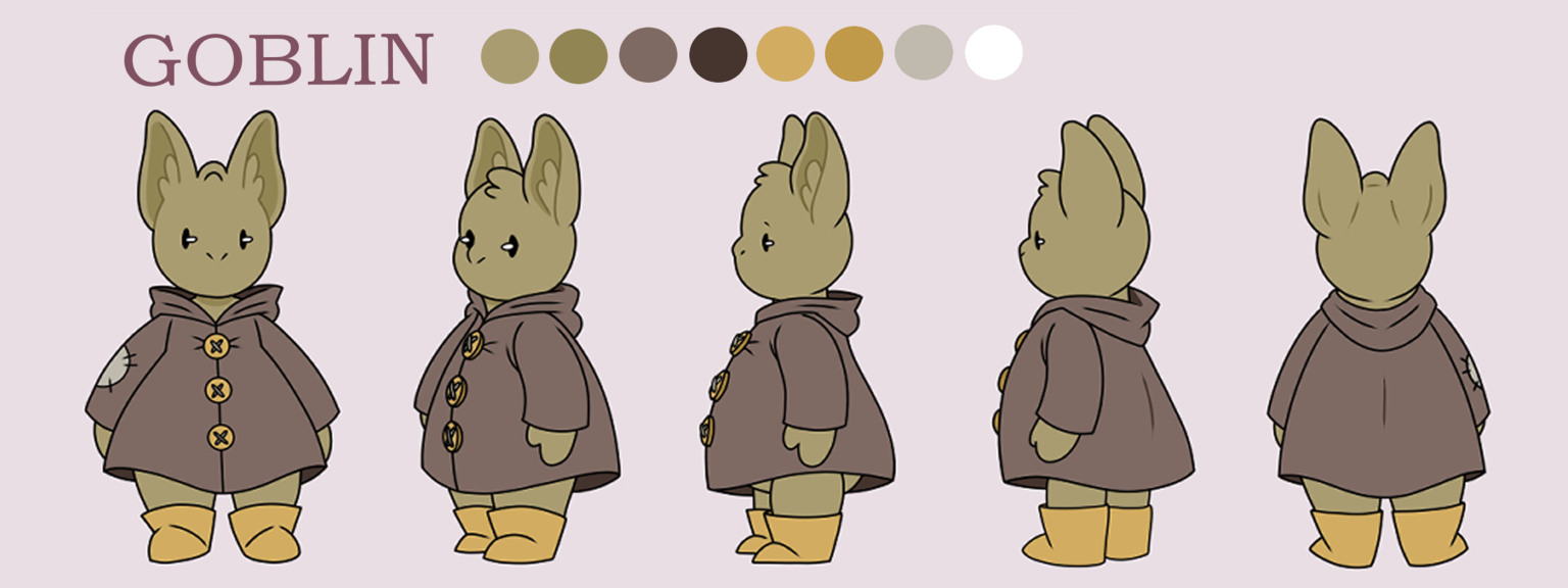A goblin's best friend is sick so he sets off through the dark forest to find a cure from a local witch. I wanted to make something cute and atmospheric that would appeal to my little cousins.