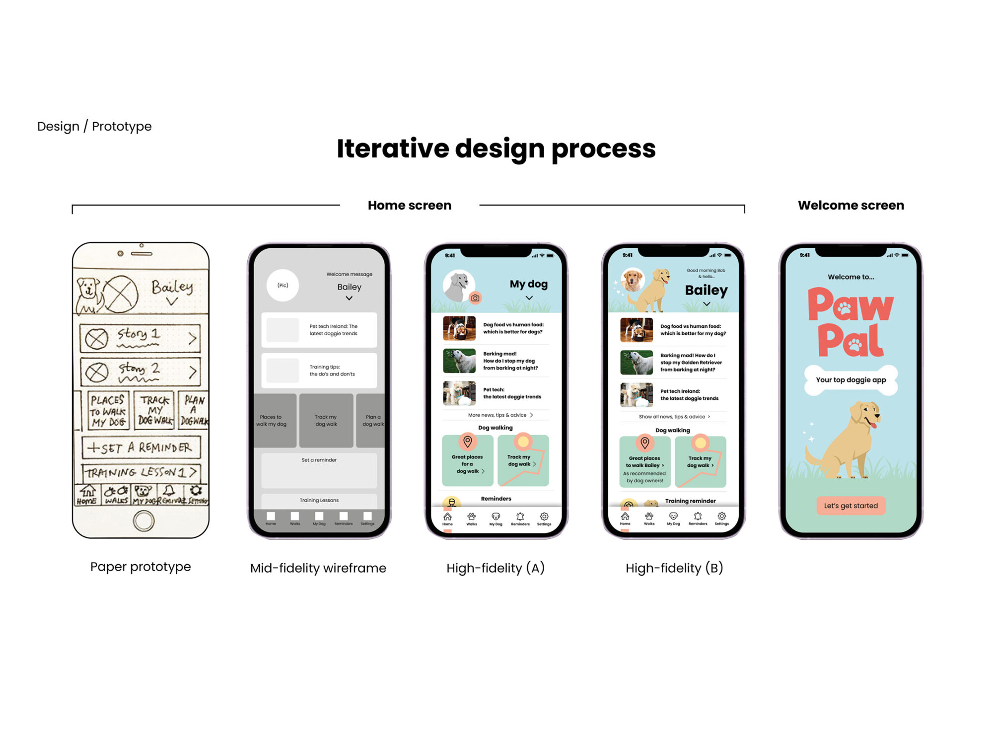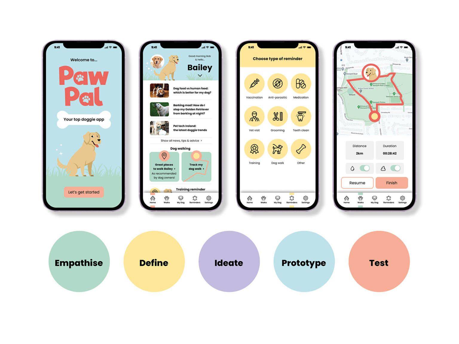Hi. My name is Niamh Hughes. I’m a Visual Communications graduate, experienced in graphic design, journalism, and marketing. What I love about this Masters of UX Design programme is the balance between art and science, strategy and creativity, research and intuition. Thanks to this course, I have developed a great interest in interaction design and user research. I also particularly enjoyed learning about universal design, psychology, and speculative design. My final research project explored human-animal interaction and design for motivation and wellbeing. It involved creating an app prototype for dog owners. You can see some highlights of my work below.