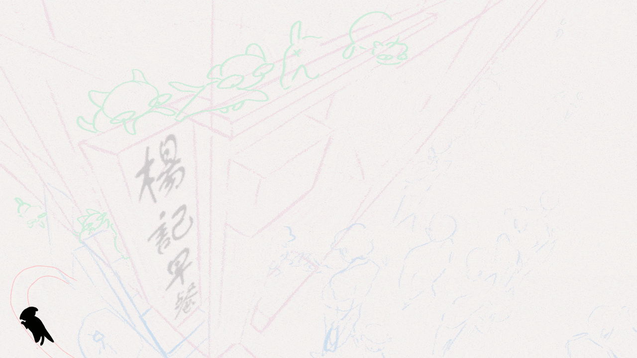 Oisín is a Dublin-based animator specialising in hand-drawn character and effects animation. They love simple styles and high-contrast colours, and their favourite things to create are weird atmospheric worlds with an edge of creepiness. They try to do a lot of loose straight-ahead animations and use experimental styles.