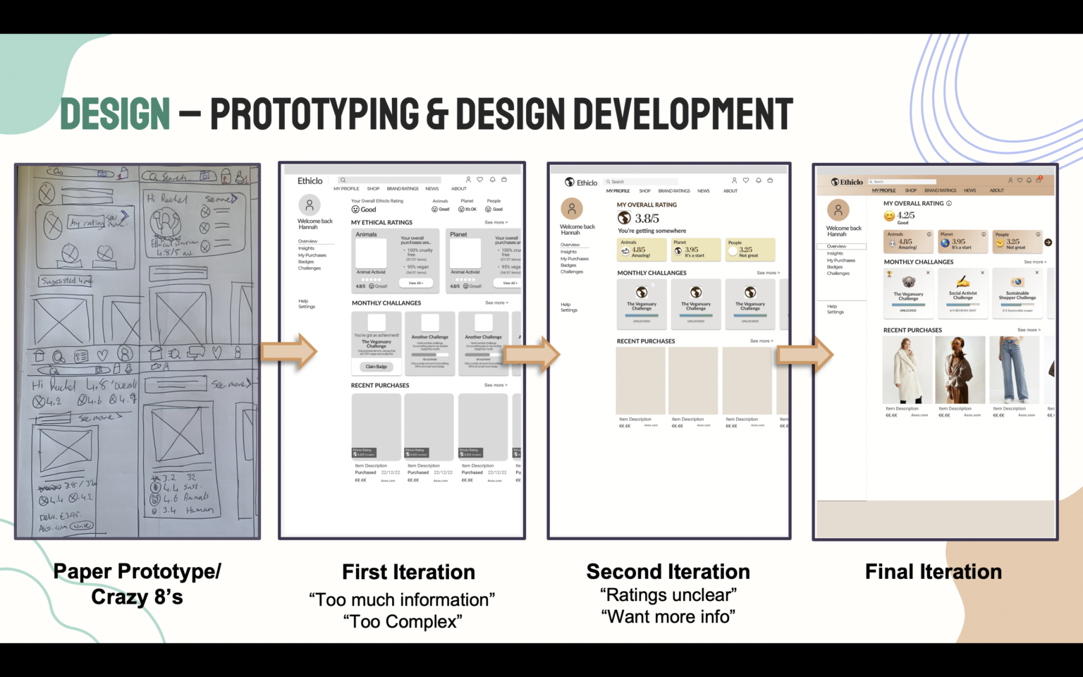 Iterations of the prototype were designed and guerrilla tested with groups of participants. From the findings, issues in the prototype were addressed and improved through each iteration until the final prototype was brought to testing.