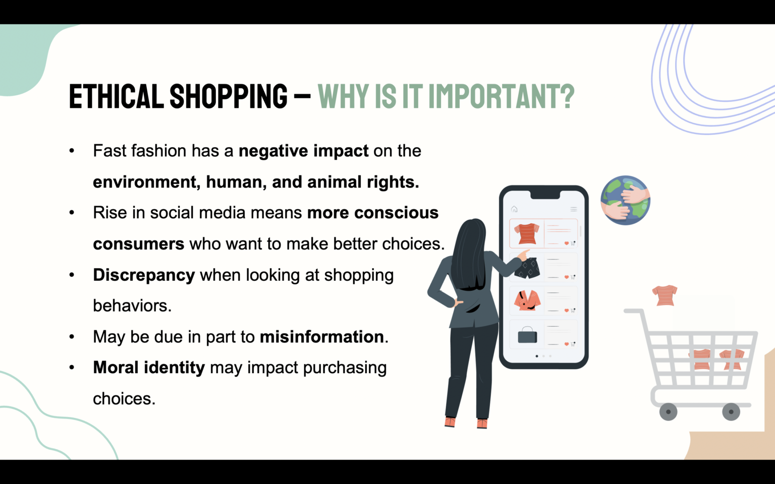 As social media use increases, so does consumers awareness of the unethical, unsustainable impact of fast fashion. As a result, it is no surprise that being a conscious consumer, and making a positive impact through purchasing choices was voted one of "the top 10 consumer trend of 2019" by Euromonitior International. Despite this, there is a discrepancy between consumers expressed interest, and actual behaviours when examining purchasing choices. There may be many factors impacting this, but this study investigates the impact of misinformation on consumers ability to engage in ethical shopping, and understand the role moral identity plays in their choices.