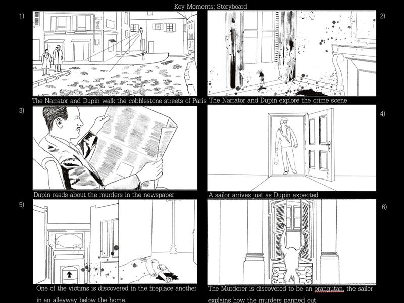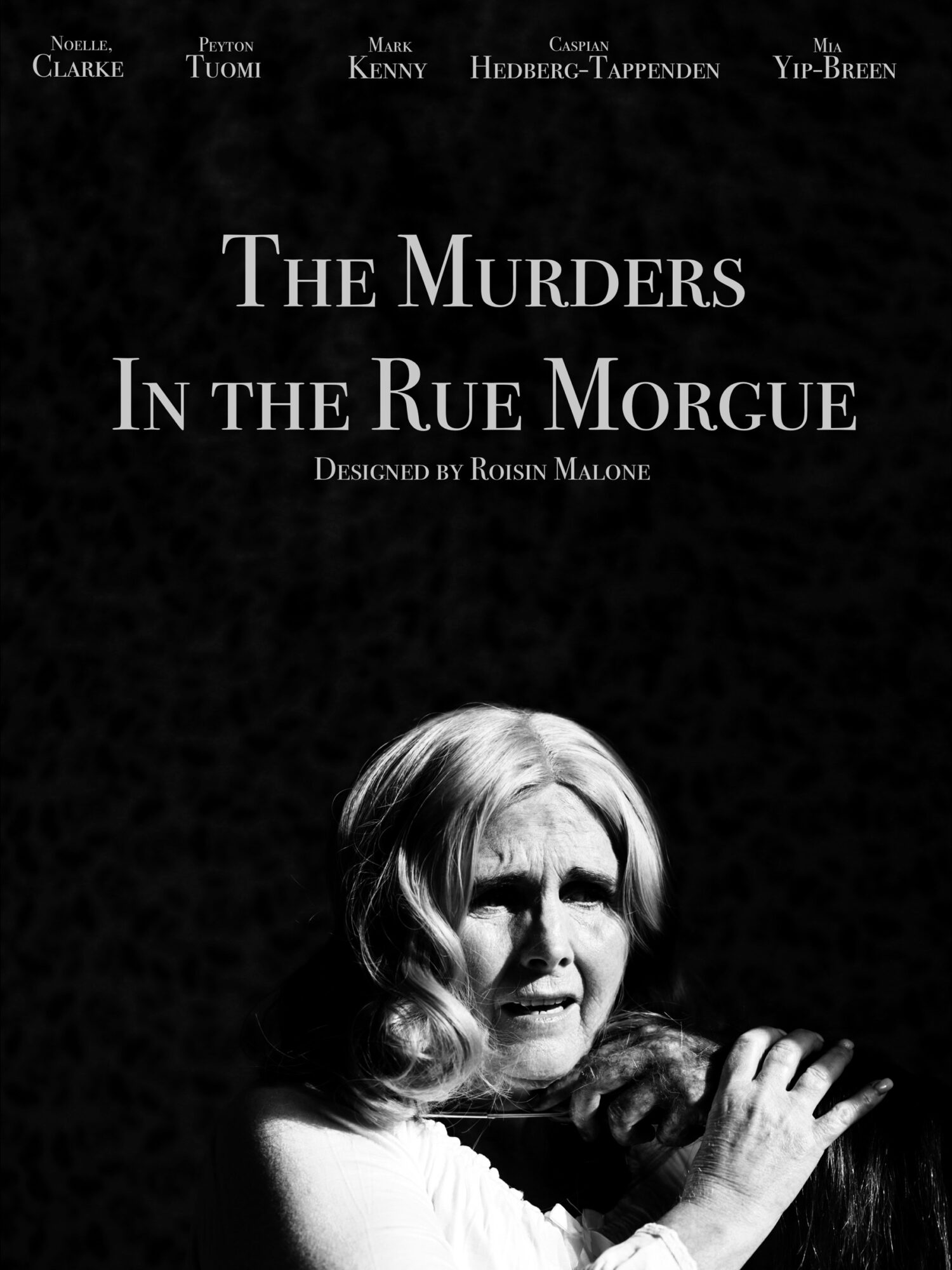 Written by Edgar Allen Poe The Murders in the Rue Morgue follows the story of the mysterious deaths of two French women. It is a hot summers night in July of 1840 where a sleeping street in Paris is awoken to the screams of a young lady. By the time anyone reaches the location of these screams two women have been murdered. No one knows who committed these heinous crimes. Each witness recalls hearing a different language being spoken,to which none of the witnesses can agree. It is not until the narrator introduces us to Auguste D'upin an extremely intelligent man that the mystery is solved and the murderer is discovered to be an orangutan. The focus of my project aimed to explore the murders of the two women in the piece while also changing the period in which the piece is set to the 1950s.