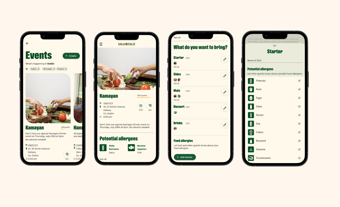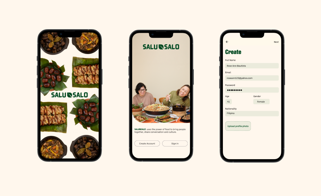 Salu-Salo is an app for Filipino migrants to bond over communal meals, easing homesickness. It enables authentic community interaction and strengthens cultural identity through shared food experiences.