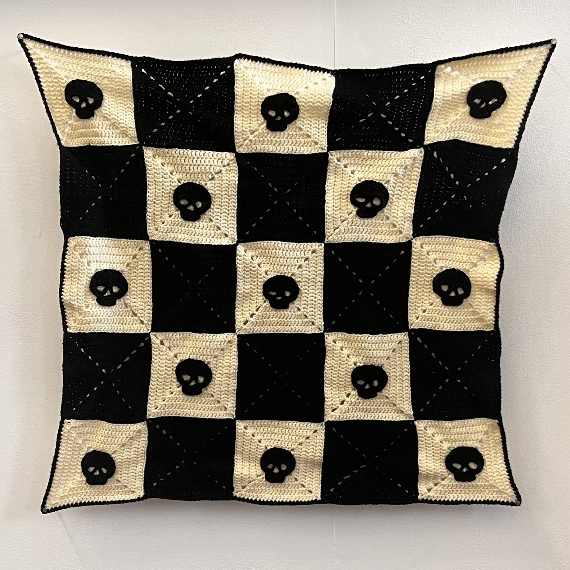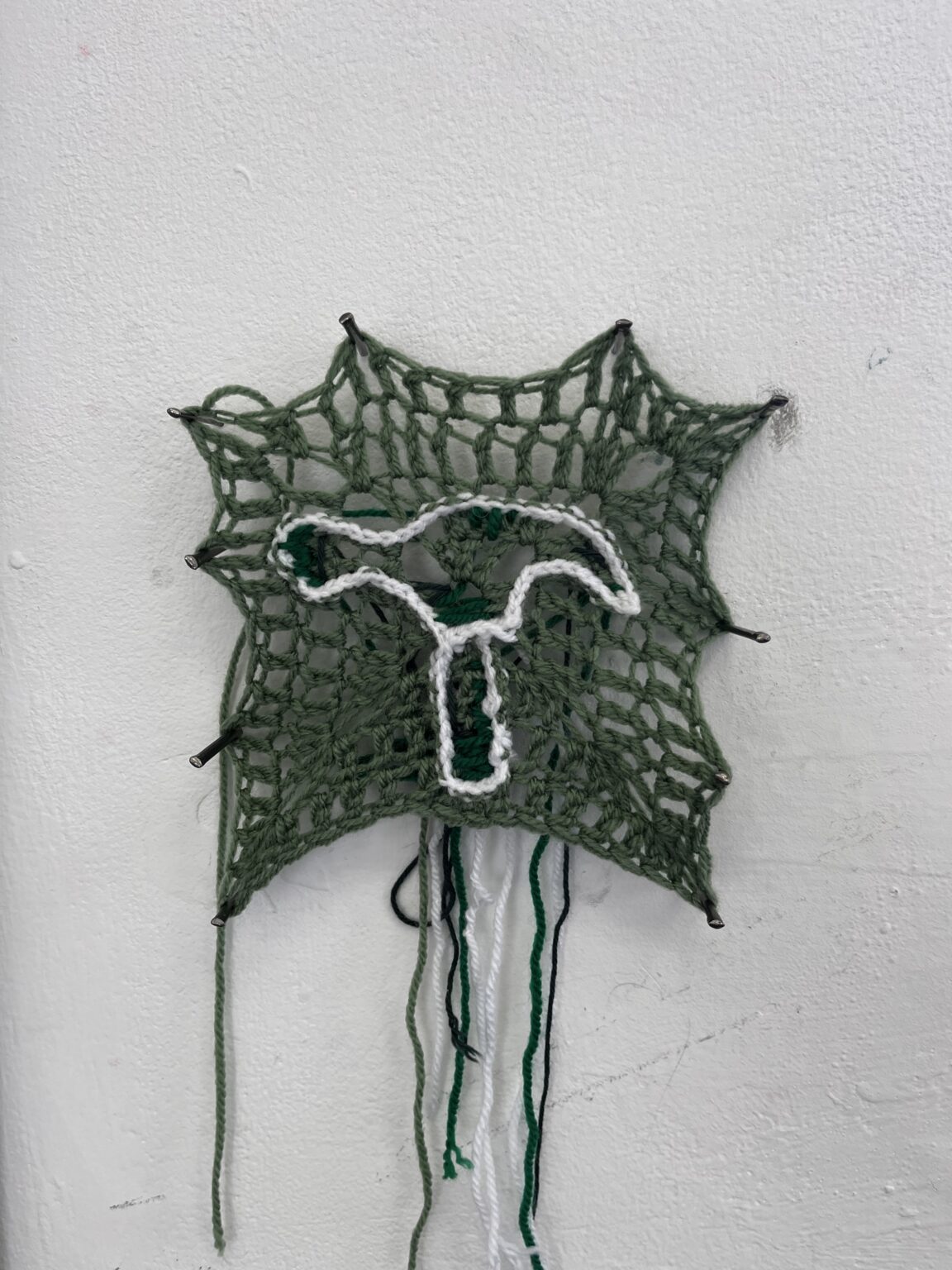 I have worked with yarn and crocheting techniques for years and through my practice I am determined to use these traditional materials and craft techniques in a fashion that will find a context within contemporary art. I have been researching the history of craft techniques such as the granny squares, and use original patterns from the 1800s using books like ‘The Art of Crocheting’ published in 1891. Themes in my work include woman's rights neglect, particularly in medicine and childbirth. I mainly work through textiles and materials such as yarn, thread, and string, I display my work uniquely in attempt to encourage textile craft art to be respected more in the art world