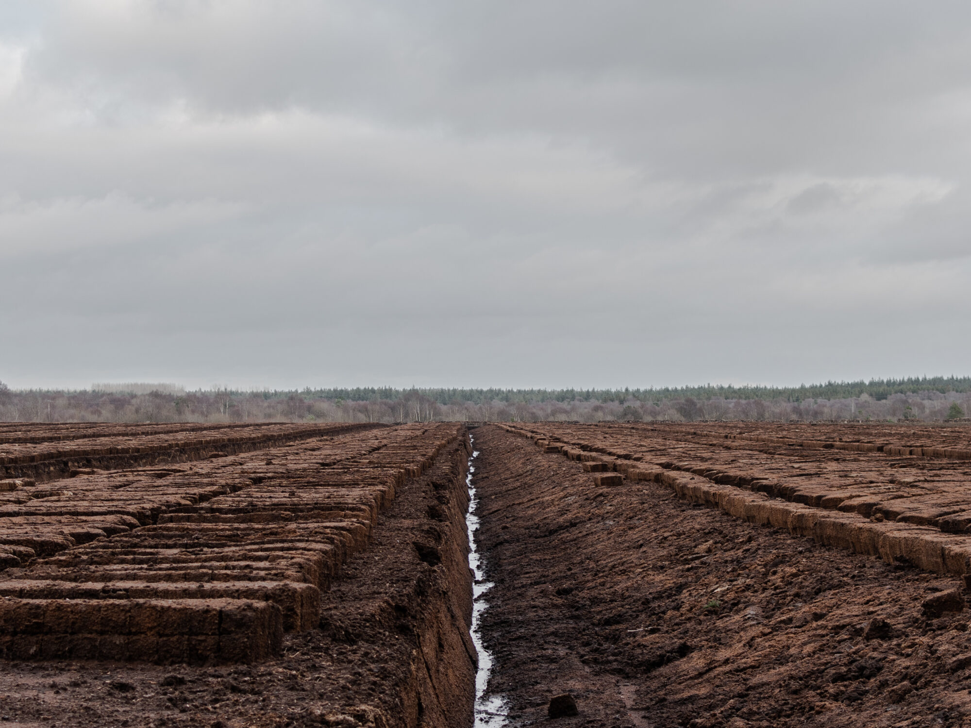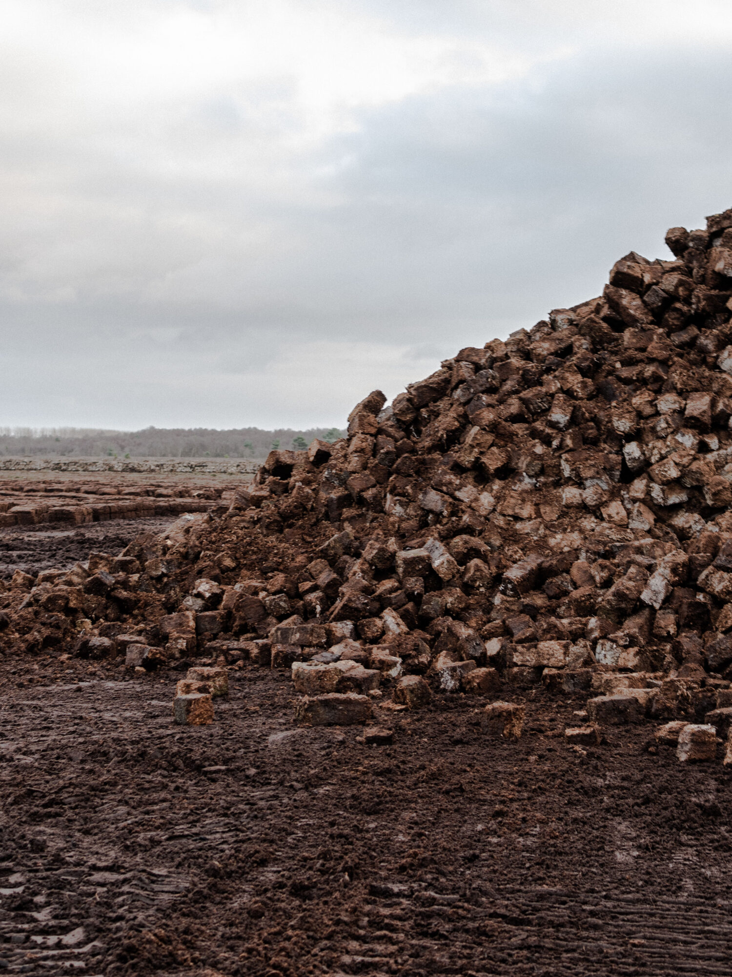 The Irish landscape is made up of 134 million hectares of bogland, equating to 16.2 per cent of the Island of Ireland. Peat, the fossil fuel making up this bogland, has been cut, dried and used as a fuel for centuries and while it has been essential for the survival of many rural Irish people, it has now become a problem in the age of the Anthropocene. When burned, peat ( turf) releases carbon dioxide, which is contributing to climate change. Now in 2023, industrial scale peat extraction has ended and private turf cutting looks set to end in the coming years. Taken from a wider long-term body of work, this work examines the remnants of the harvested boglands.