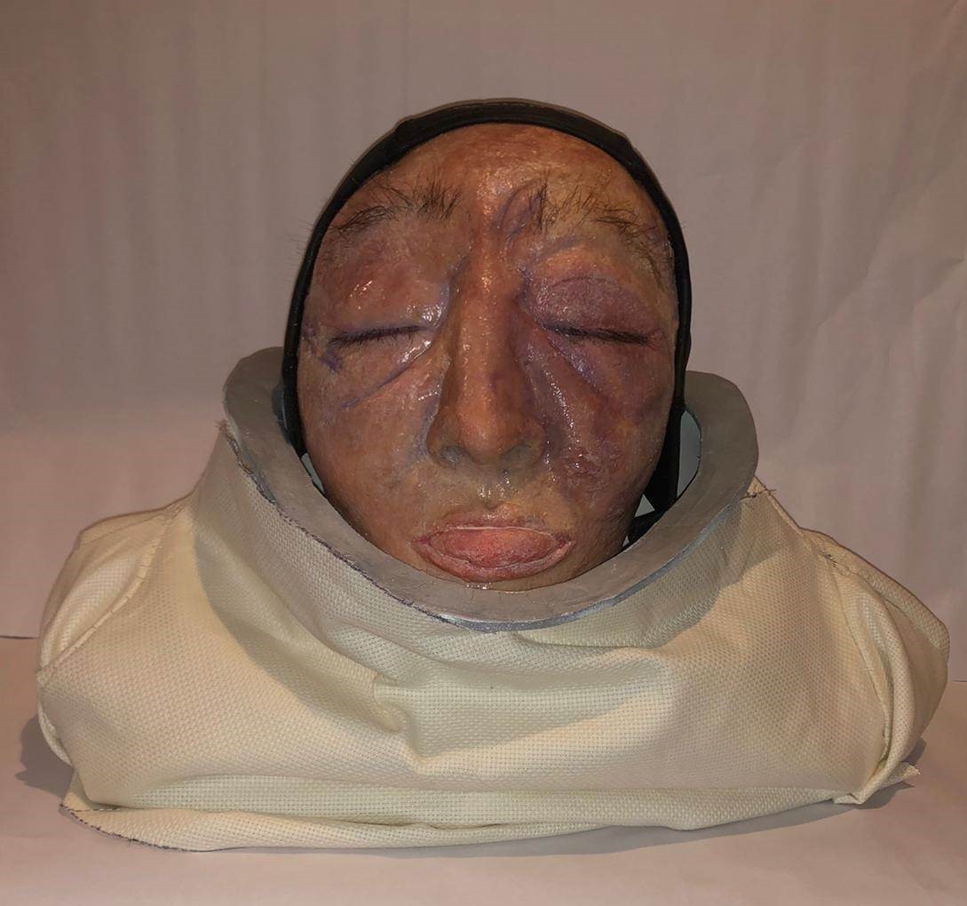 I made a movie prop bust of an astronaut head. This prop would be used in a scene in which the astronaut had been killed in the vacuum of space. I chose this project to show my range of skills.