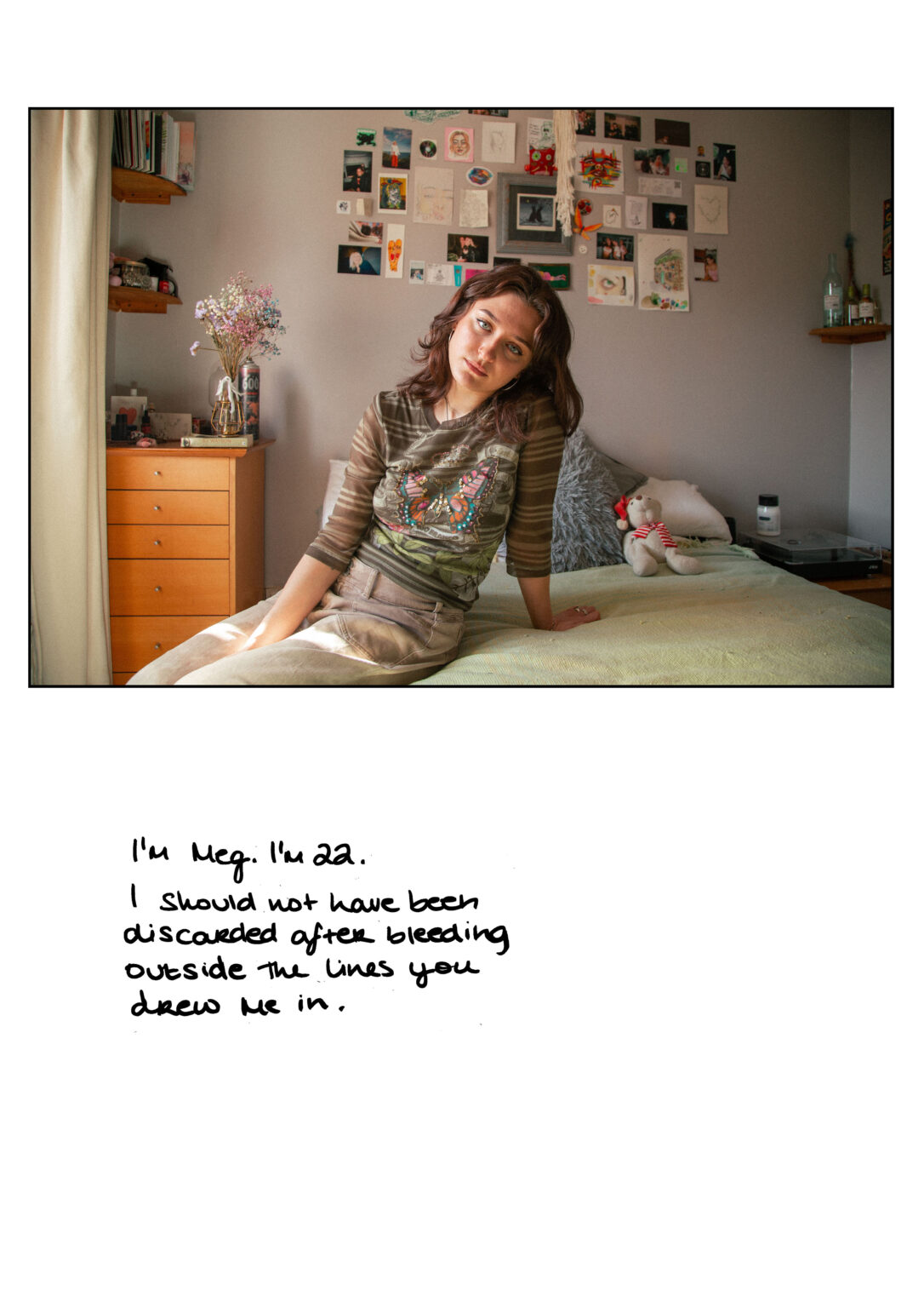 Through the use of handwritten text, the subjects reflect on their adolescence and respond to their younger selves. In doing so, they highlight the evolving aspects of their identities and showcase the intricacy, intimacy, and profound significance of girlhood.