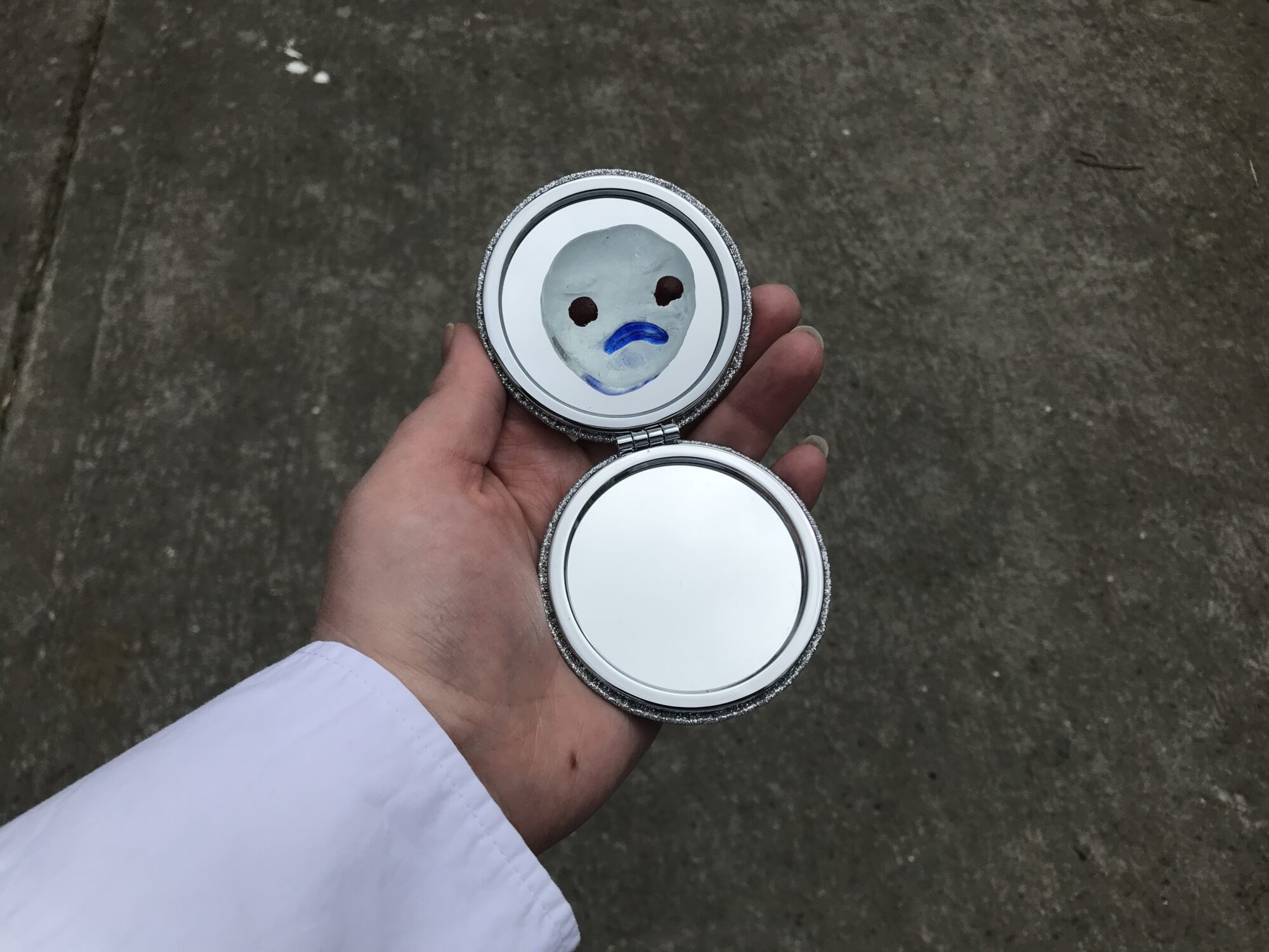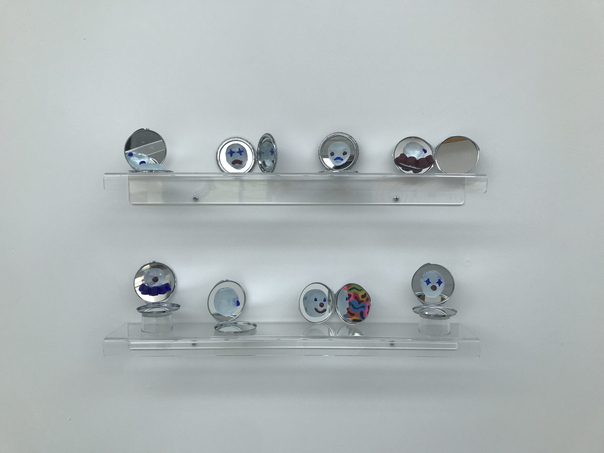 This project relies heavily on the viewers interaction with the work. As mirrors are a prominent feature, to look at the work the viewer must also look at themselves creating a forced self portrait. By doing this alongside glass clown masks the viewer is confronted with not only themselves but also the clown version of themselves.