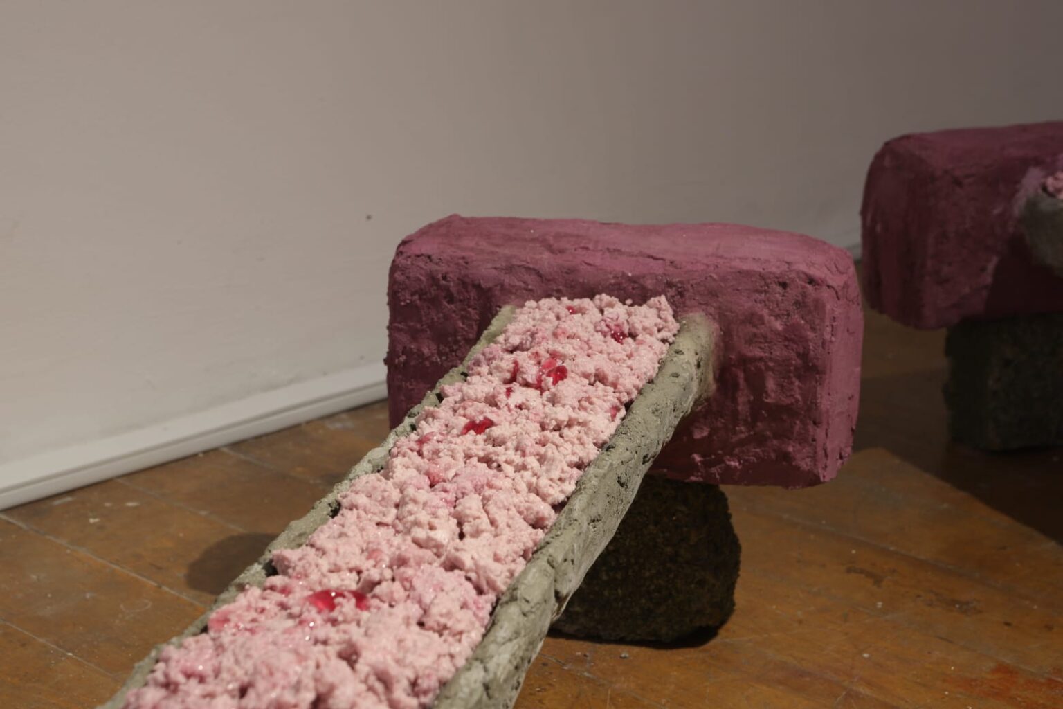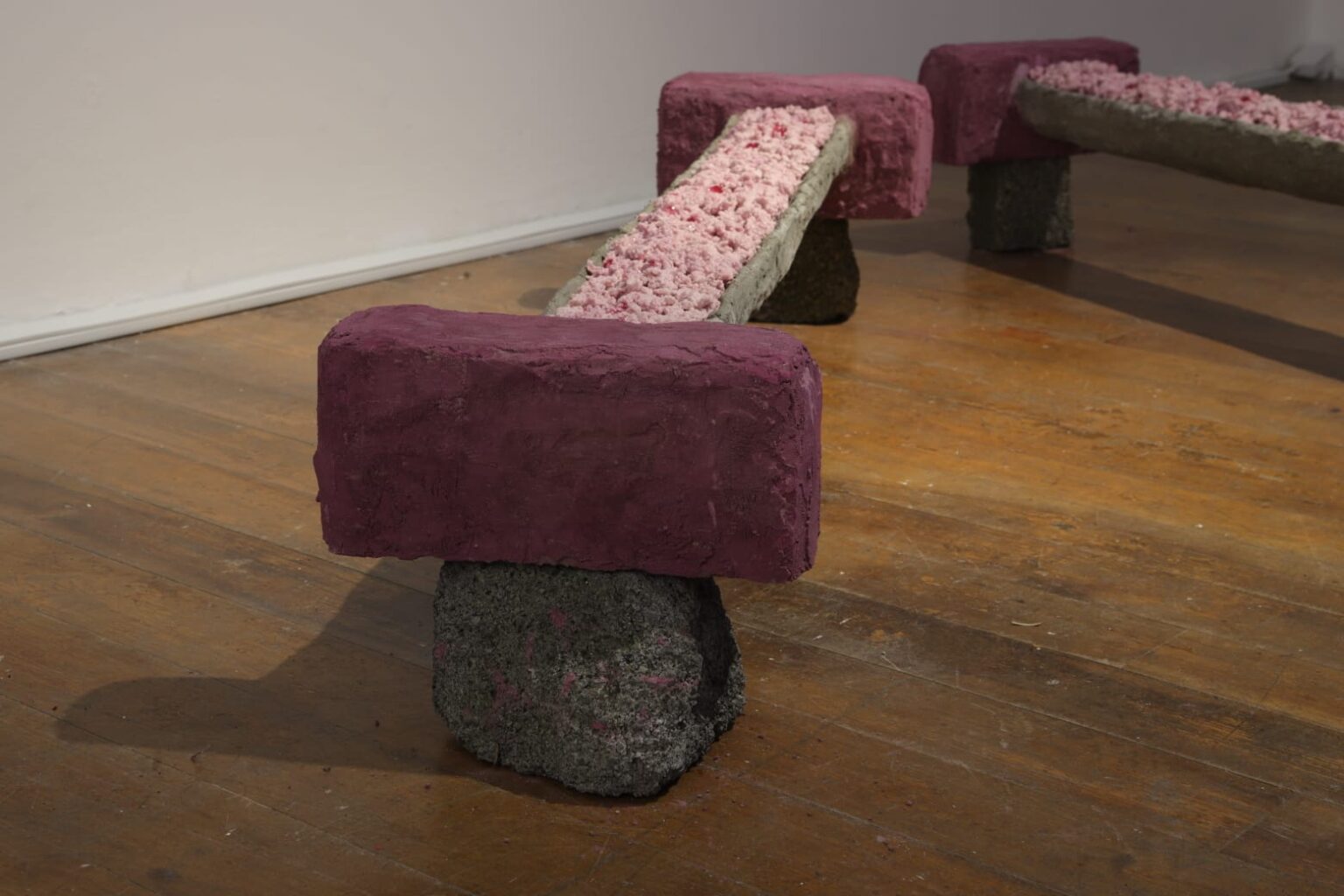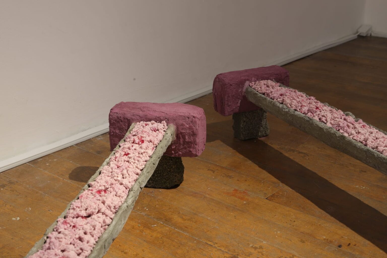 Camille Peat is a visual artist currently practicing in Dublin, Ireland. Her artwork mostly uses large-scale sculptural installation to explore and experiment within the realms of prosthesis, metamorphosis and mimesis. She is interested in exploring the notion of the prosthetic imagination. Her work largely consists of material investigation through process-based experimentation, finding contrasting substances to augment and expand upon. She has exhibited in group shows such as The Place Project, IMMA and IADT collaboration (2021), Protézis at Magyar Képzőművészeti Egyetem (2023) and In The Making: Navel at Pallas Projects (2024).