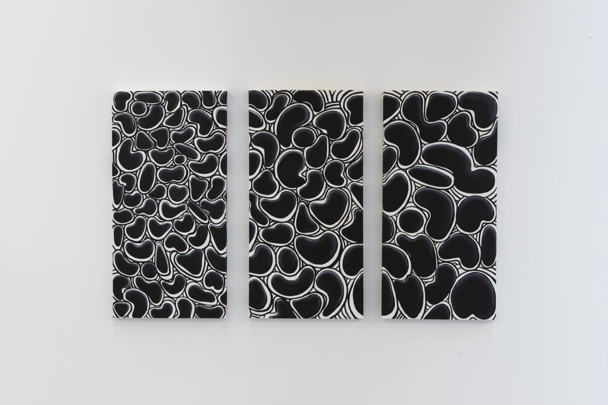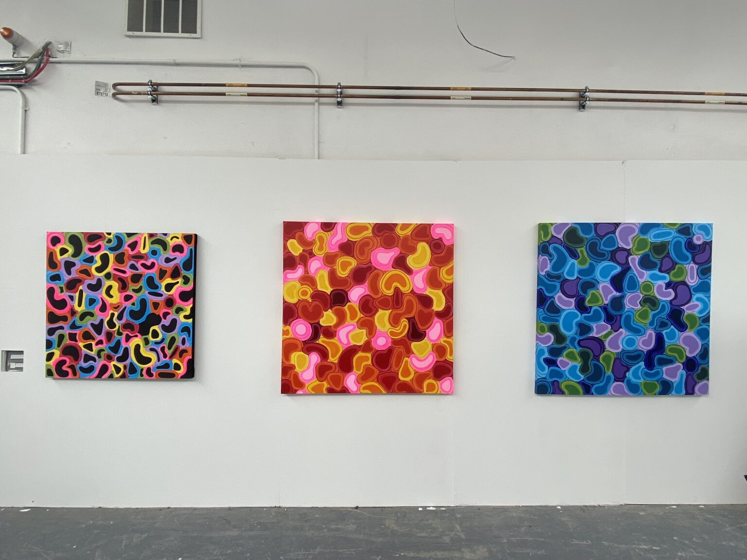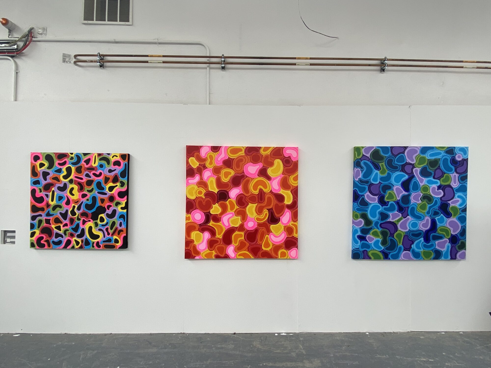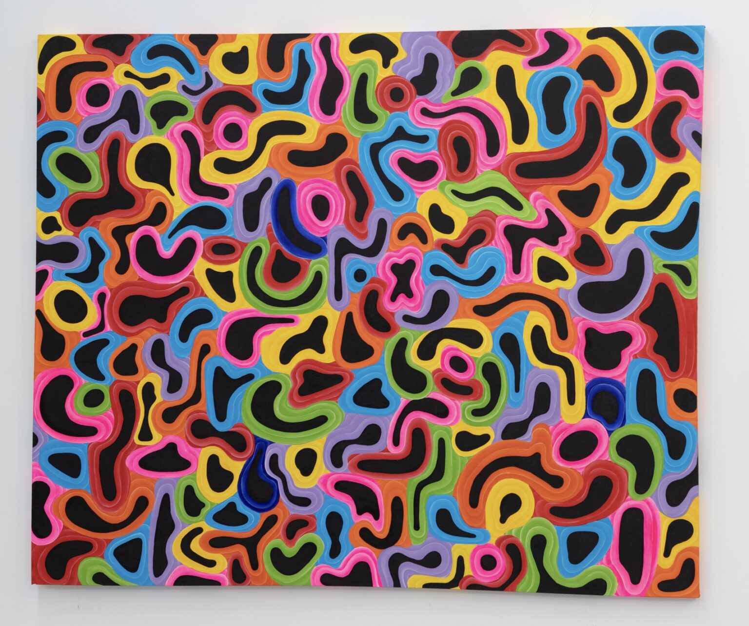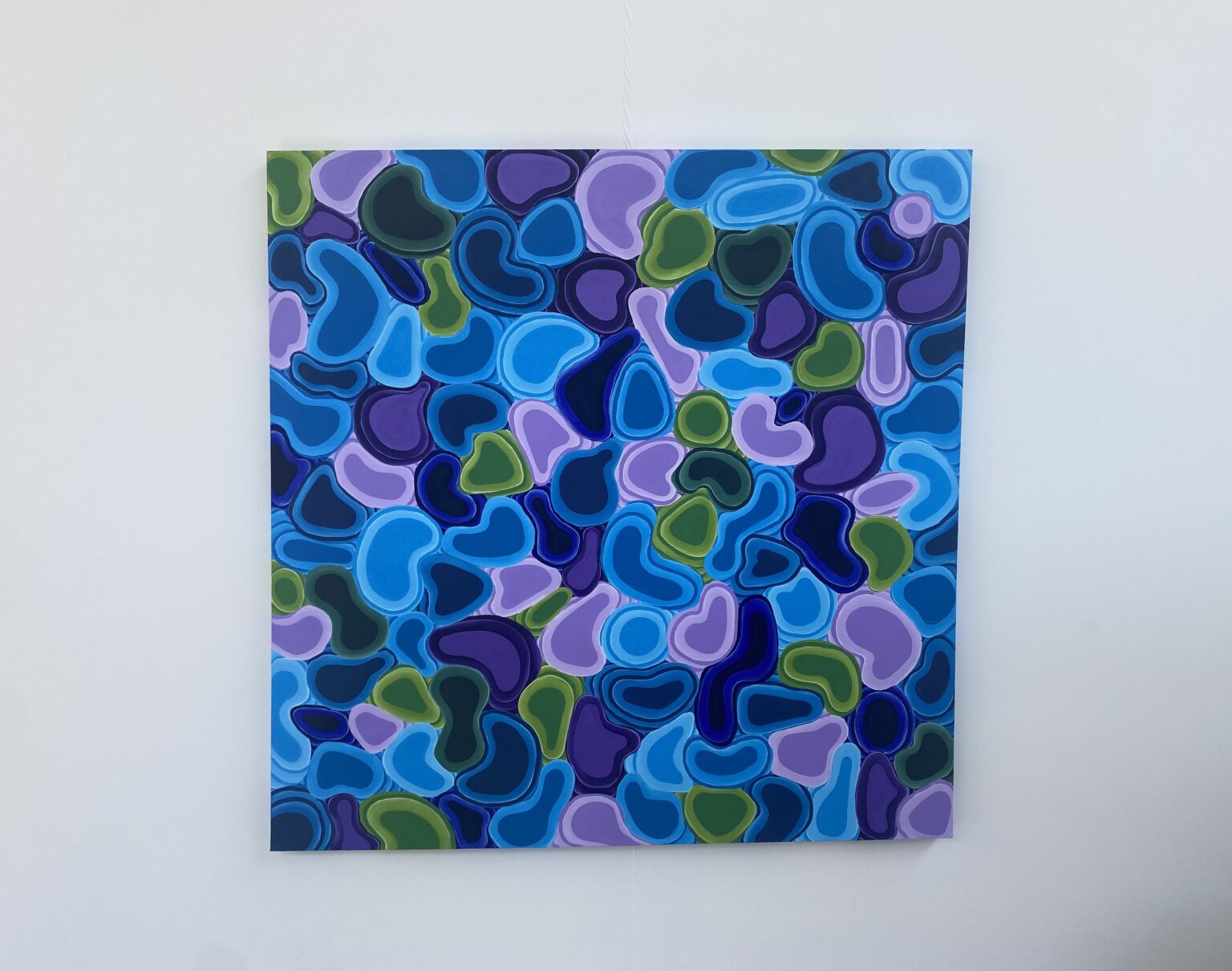 Caoimhe Farrell is a visual artist based in Dublin, Ireland. Colour theory has always been a driving force in her work. Caoimhe incorporates pattern and the idea of repetition while still using bold bright colour in abstraction. Ongoing themes found in her work are the brain, mental health and colour theory. In her current practise a recurring motif can be found relating back to the brain and the formation of memories. This is depicted in bold colour with black line work in acrylic paint. Caoimhe recently designed and painted an Elephant in the Room in collaboration with IADT. She participated in the IADT show *In the Making: Navel* at Pallas Projects (2024).
