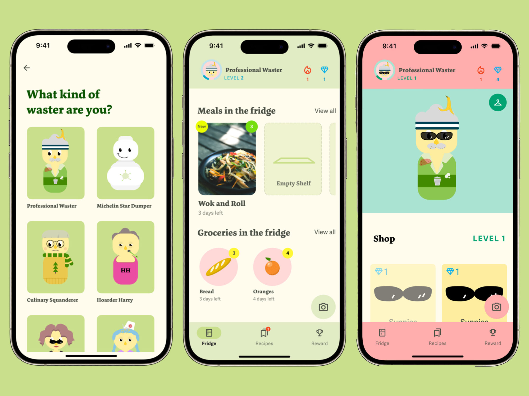Using gamification and emotional design I want to get people invested in their own food waste and give them the tools to lower or eradicate their food waste.