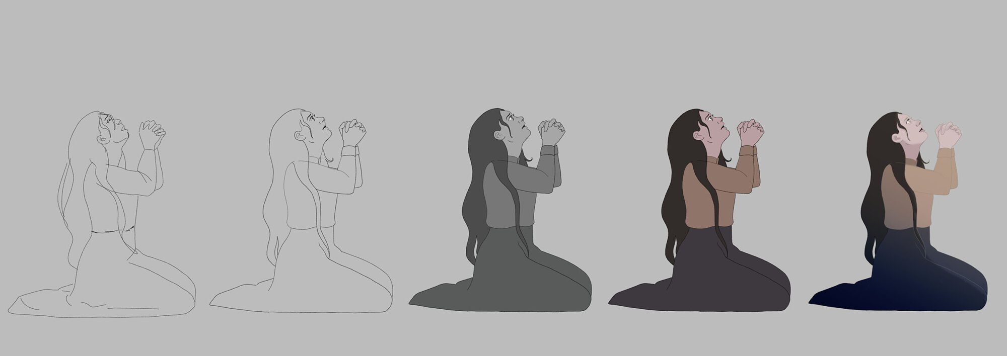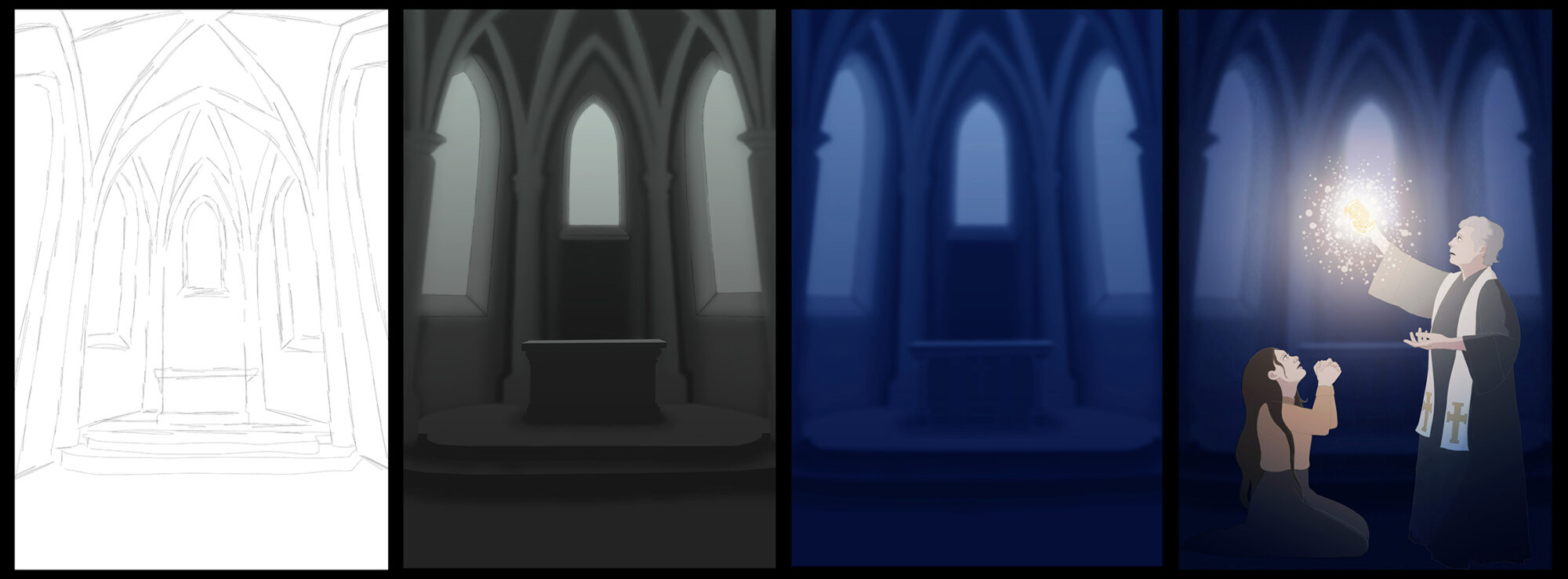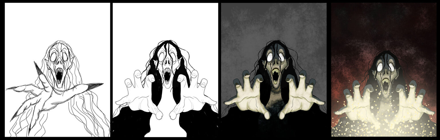 Kate is a Wexford-based artist with a great interest in the visual development aspect of the animation pipeline. She an avid fan of suspense thrillers and ghost stories and has spent much of her final year at IADT developing visuals for film projects with horror themes. For her final project, she created a series of illustrations based on folk tales of the Banshee from her native County Wexford. This showcase reflects Kate's love of stories with mystical and macabre themes. She is excited to continue building on the artistic skillsets she acquired during her time at IADT and hopes to join the industry as a visual development artist post-graduation.