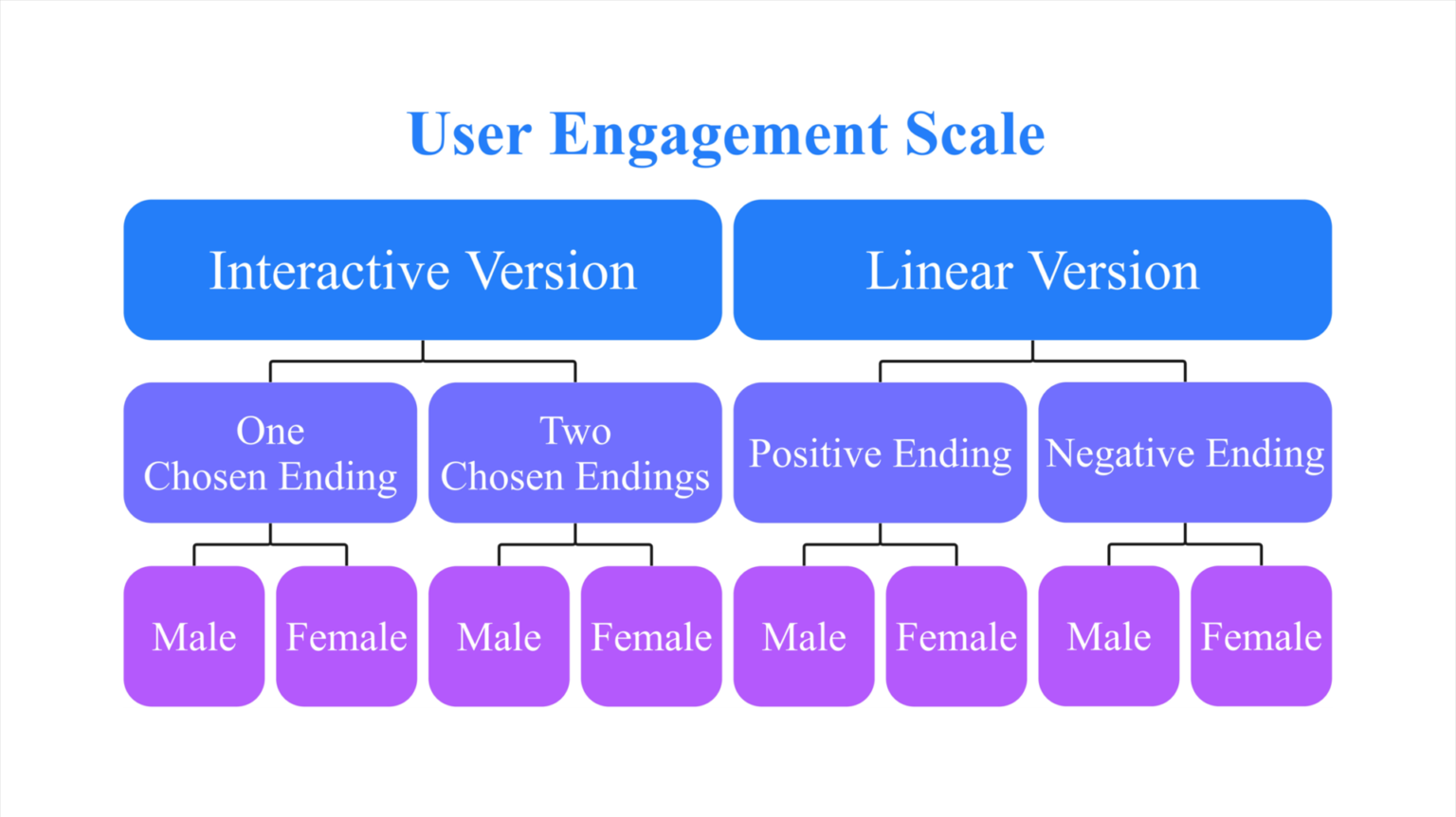 The results of the present study were consistent with four of the seven total research hypotheses. Video interactivity resulted in a significant increase in levels of state empathy, user engagement, and a significant relationship between both variables was also observed. Furthermore, participant gender also featured a significant difference in user engagement levels, but not in state empathy. There was no significant difference observed based on ending type (positive and negative).