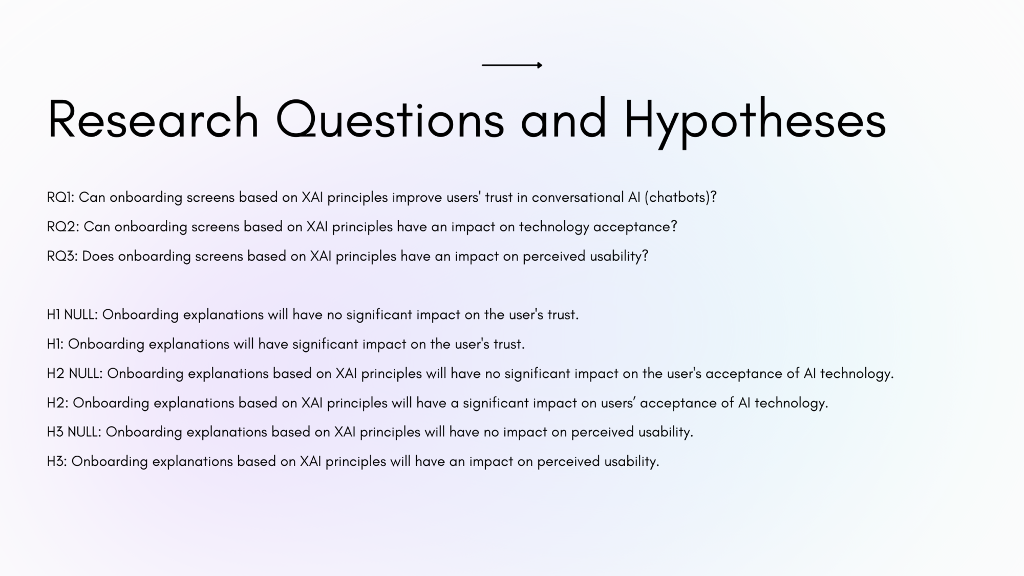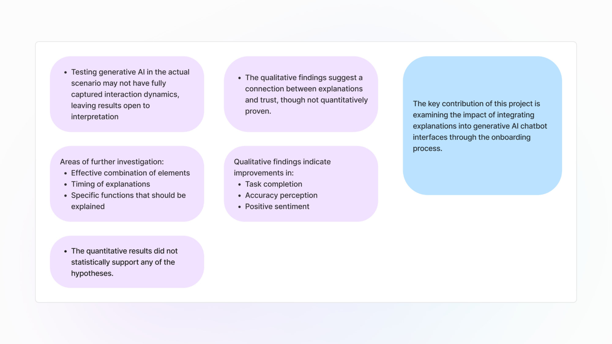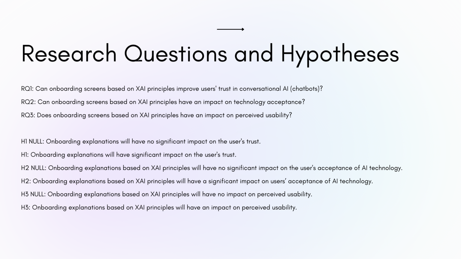To address this gap, this project investigated the use of onboarding processes to improve trust, acceptance, and perceived usability of AI chatbots.