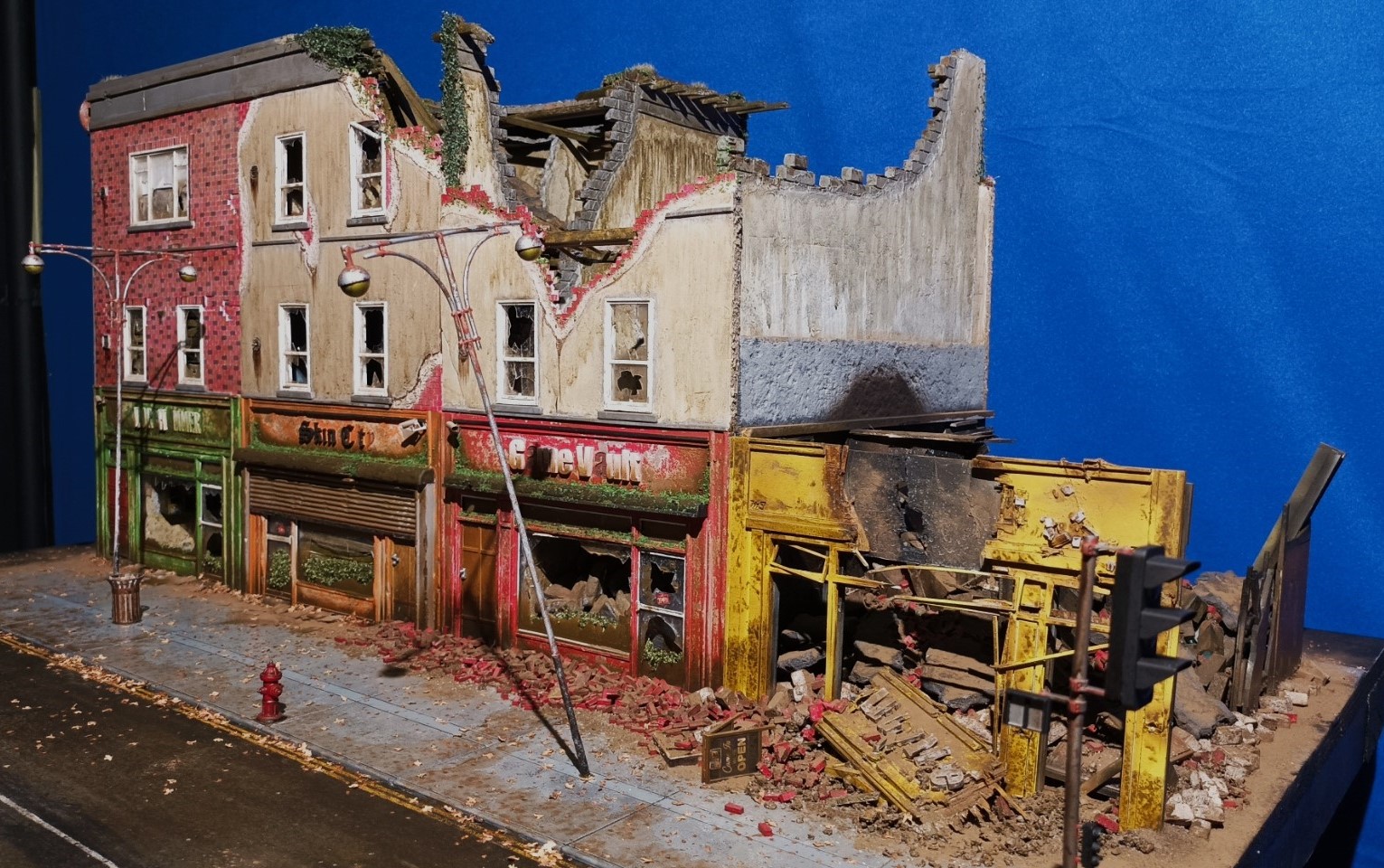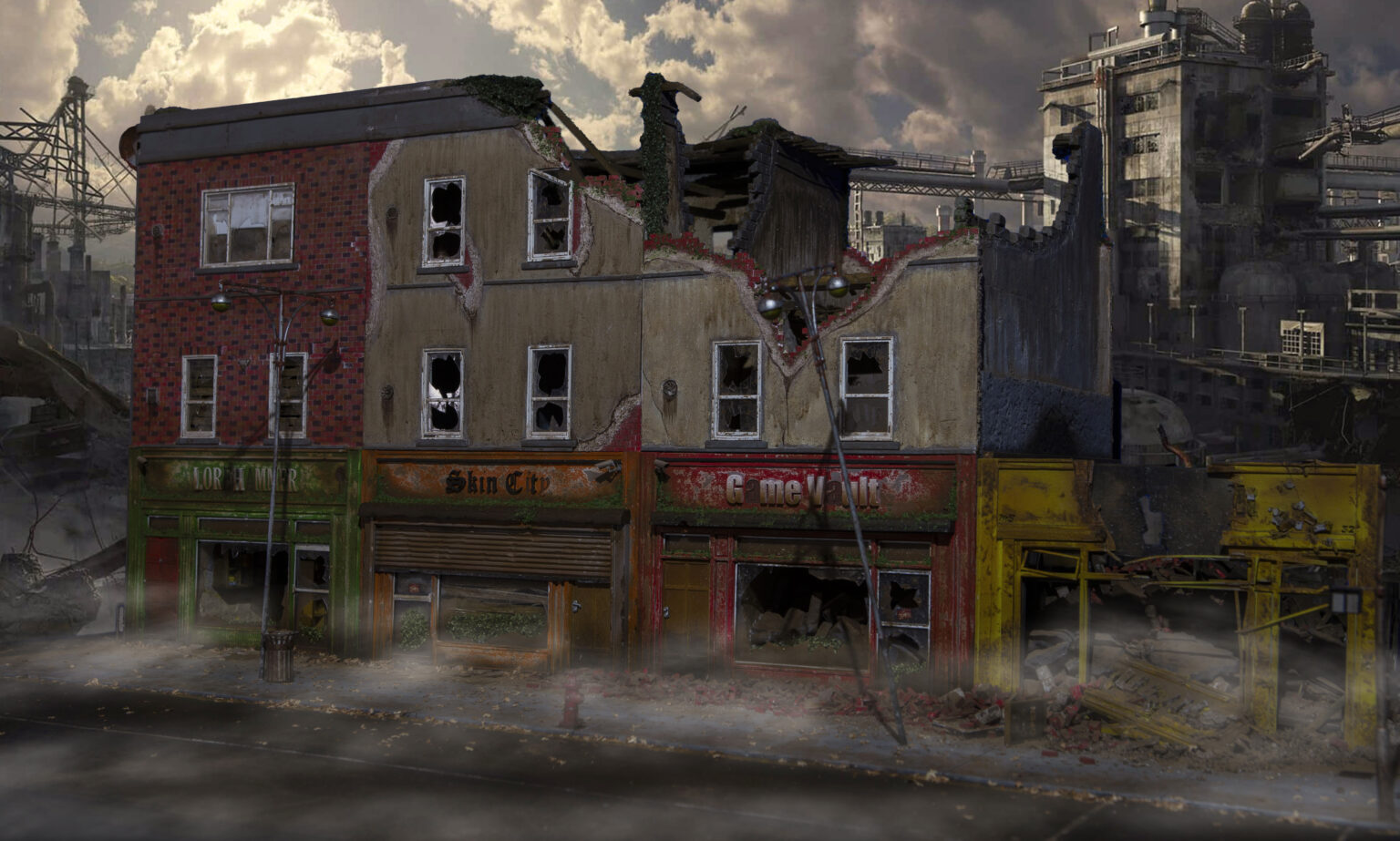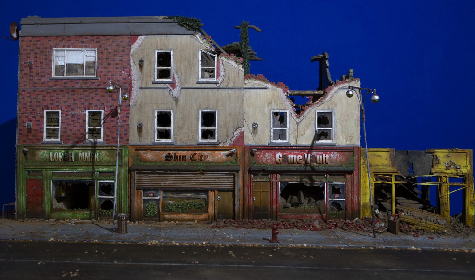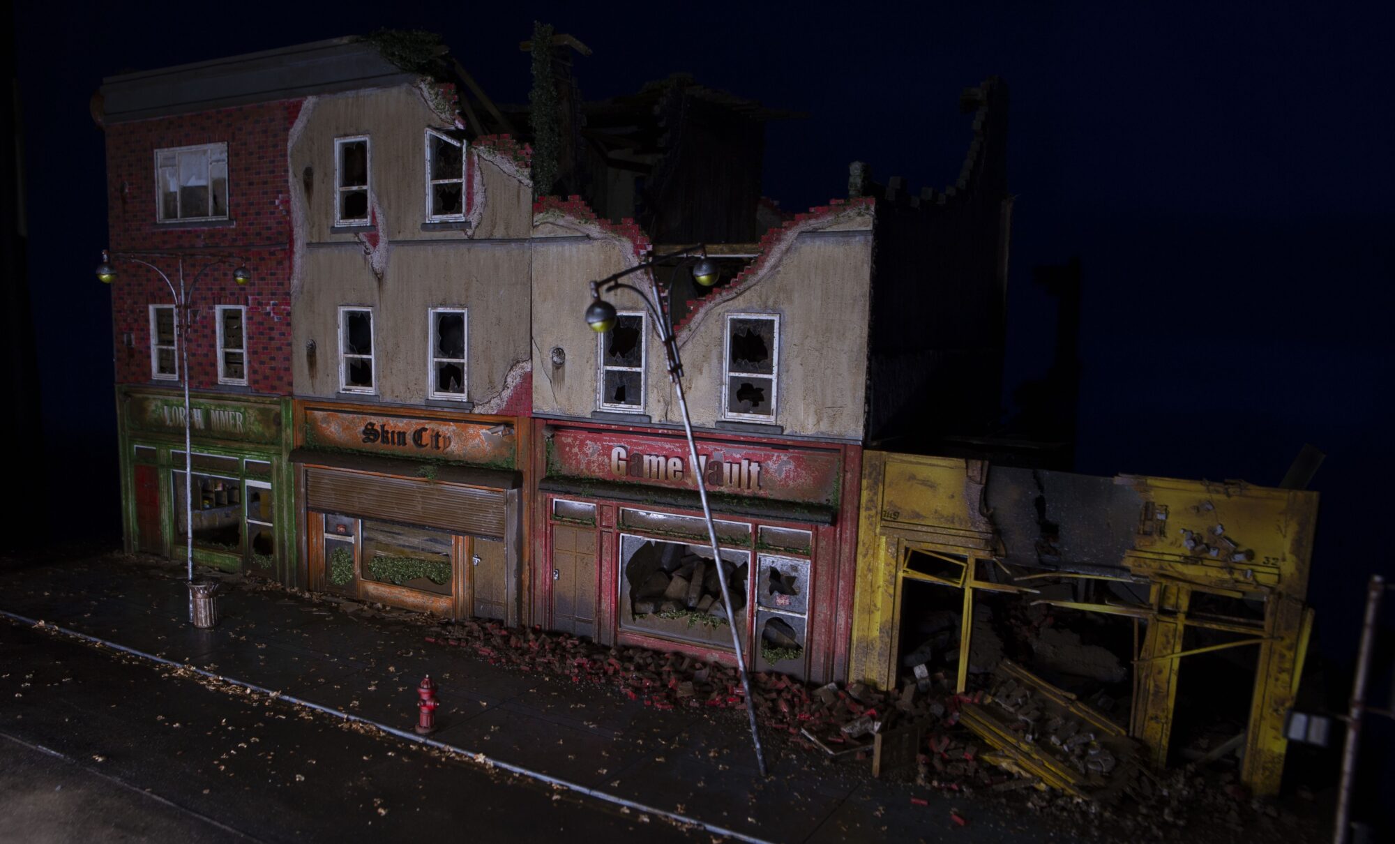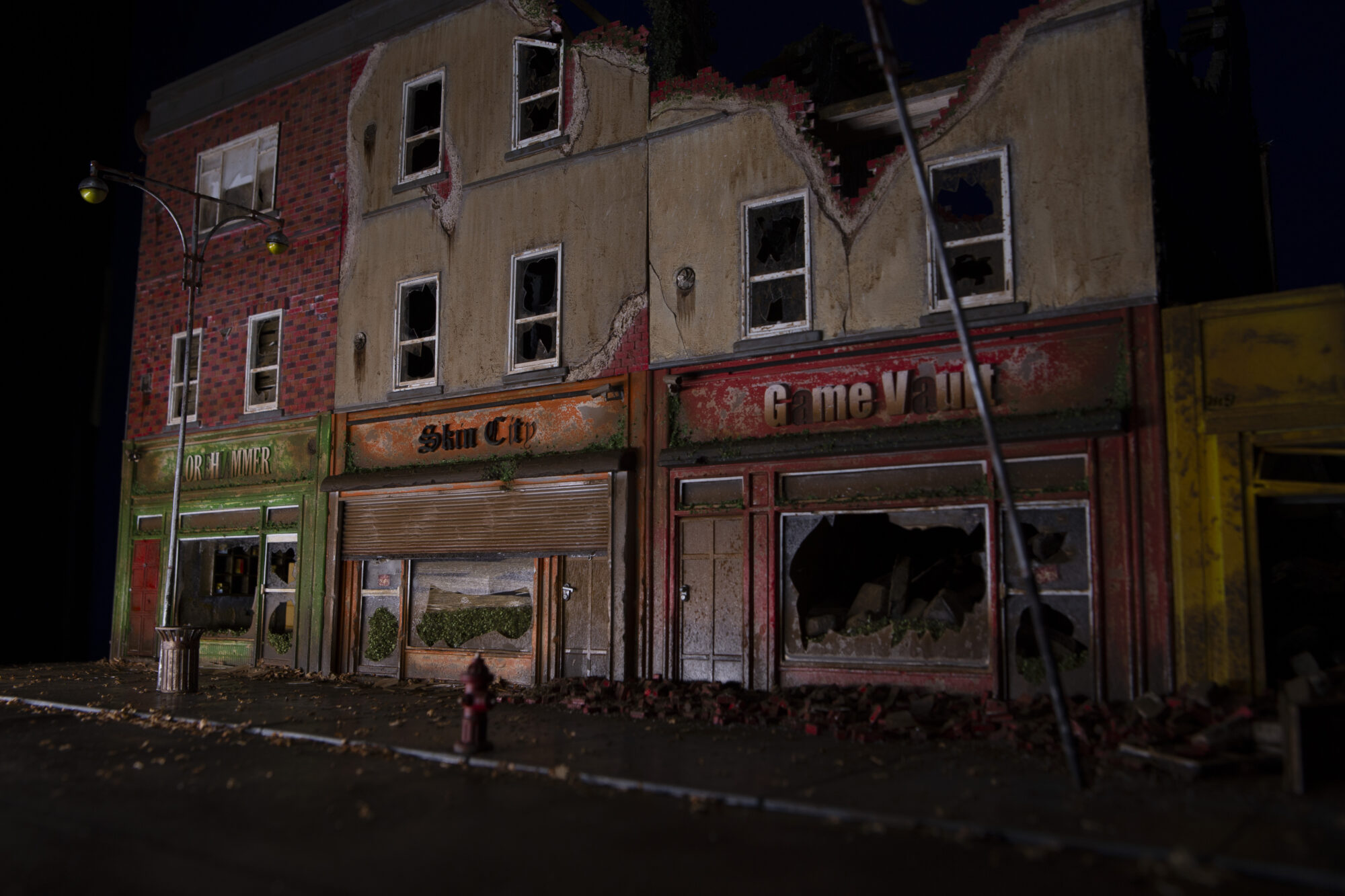 My main project is a 1:28 scaled miniature-modeled building/diorama to be used in a title sequence for an apocalyptic or war-torn-themed motion picture or television program. I also created a 1:20 scaled bedroom for the same purpose. The design of my main model takes inspiration from buildings seen in New York, combined with some elements from Irish architecture. The idea I had for the setting of this world was a devastating war that had taken place 10 years ago leaving only 30% of the world population alive. There is no government or order, just survival by any means. All the cities are ruins and are slowly being taken back by nature and wildlife. For the final part of my project I filmed the two models and created a title sequence featuring them both.