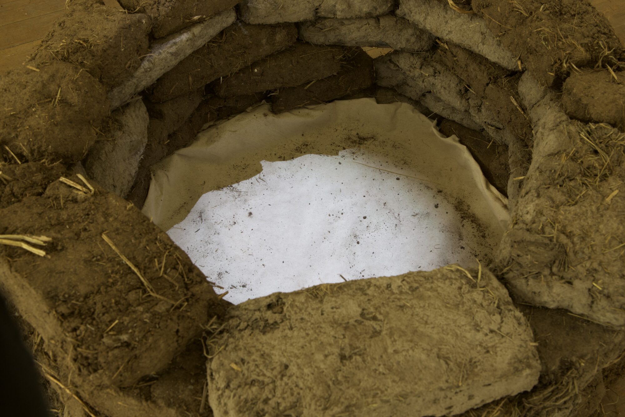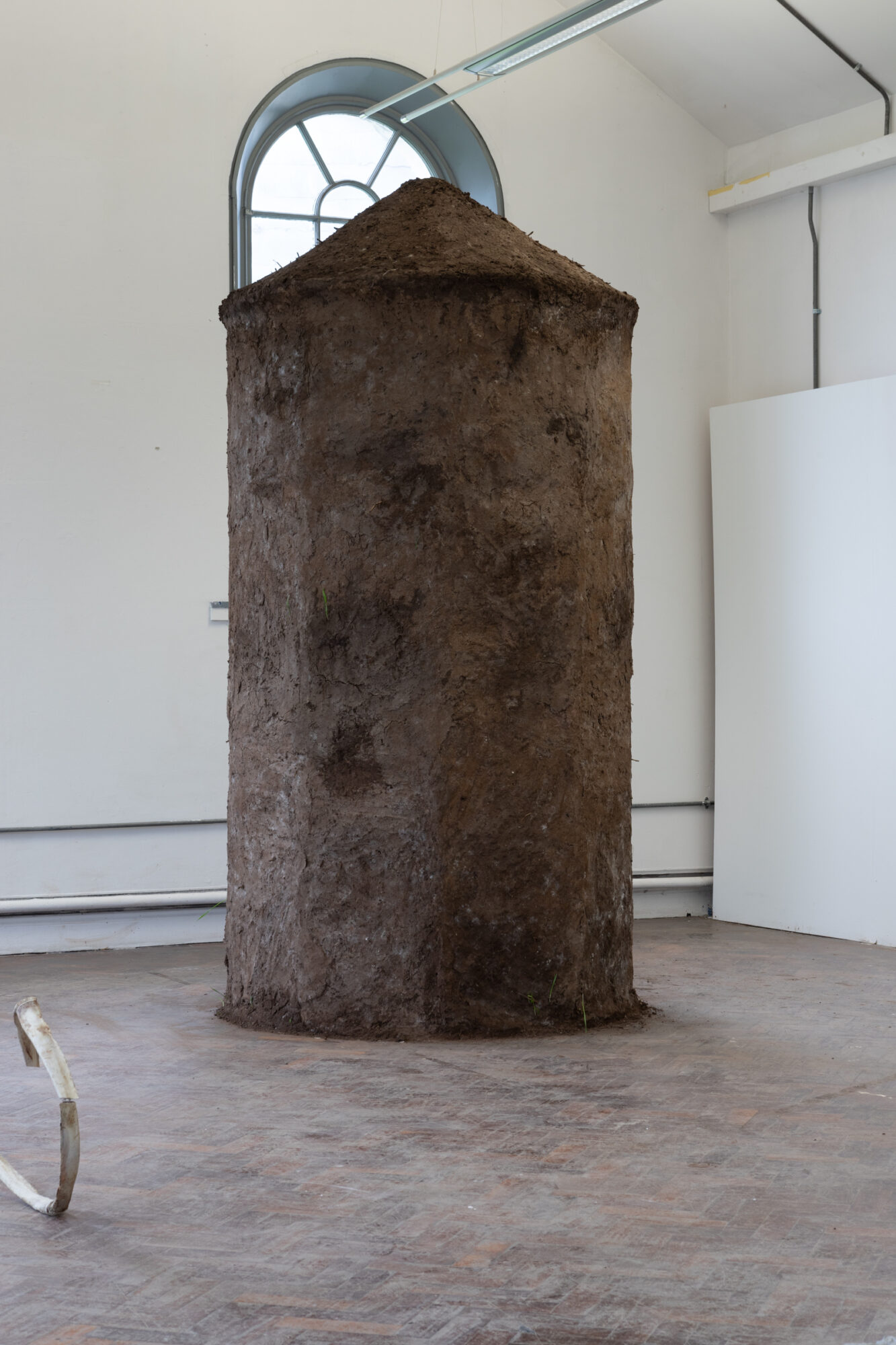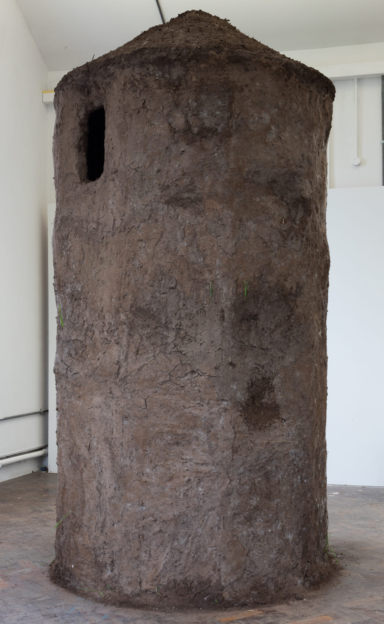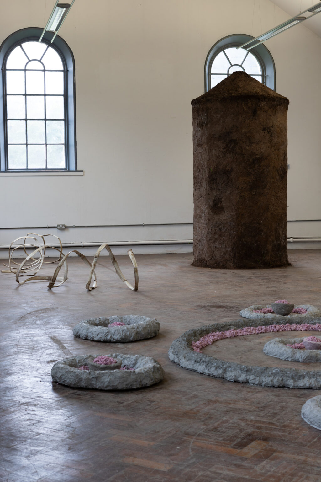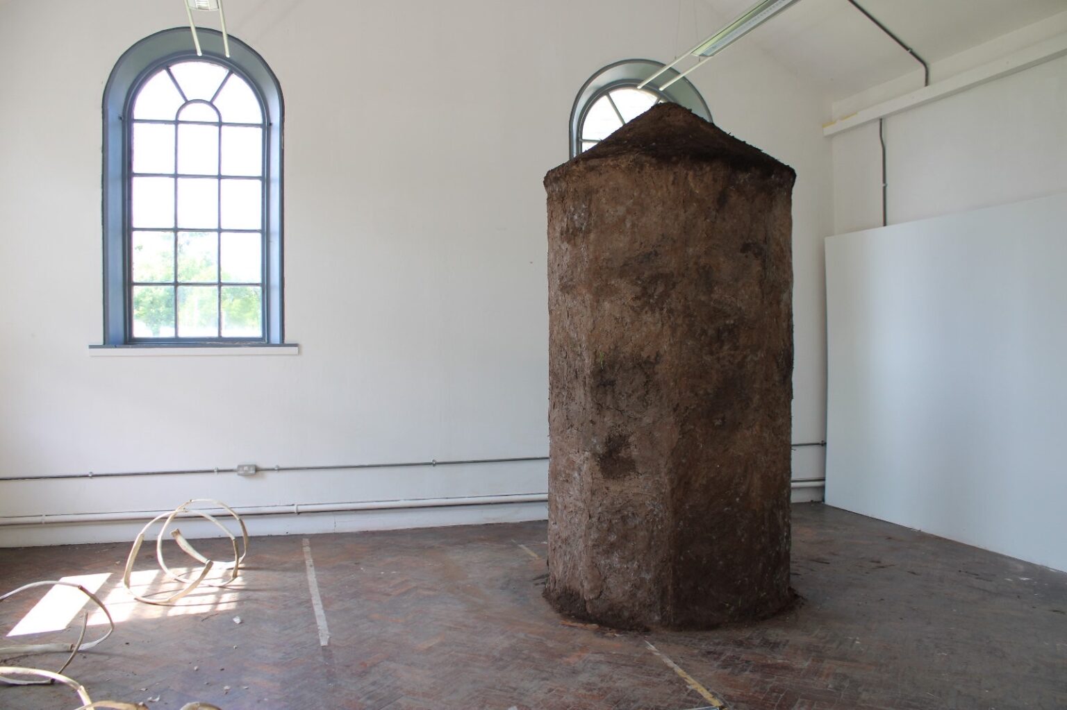 My current practice explores the built environment and how our placement within this affects us, examining the link between physicality and being. On the Karst is looking at the connection between our past architecture (round tower, a defensive structure) and water (feeling-based) using cob. The forms used within my practice create a tactile and atmospheric quality to the space they inhabit, inviting viewers to contemplate the connection between place and sensory perception—be it smell, sound, feel, or air quality. I aim to question how placement within the installation space affects us, hoping to challenge viewers to consider the symbiotic relationship between the sensory and physical. My project is highly process-based, the labour needed to create cob is key to the work. Cob is traditionally a building material made of topsoil, sand and hay. It must be mixed by hand as the weight of the material would break machinery, the walls of my tower have also been plastered by hand. Through my research, I explore how heritage, traditional skills and environment contribute to belonging.