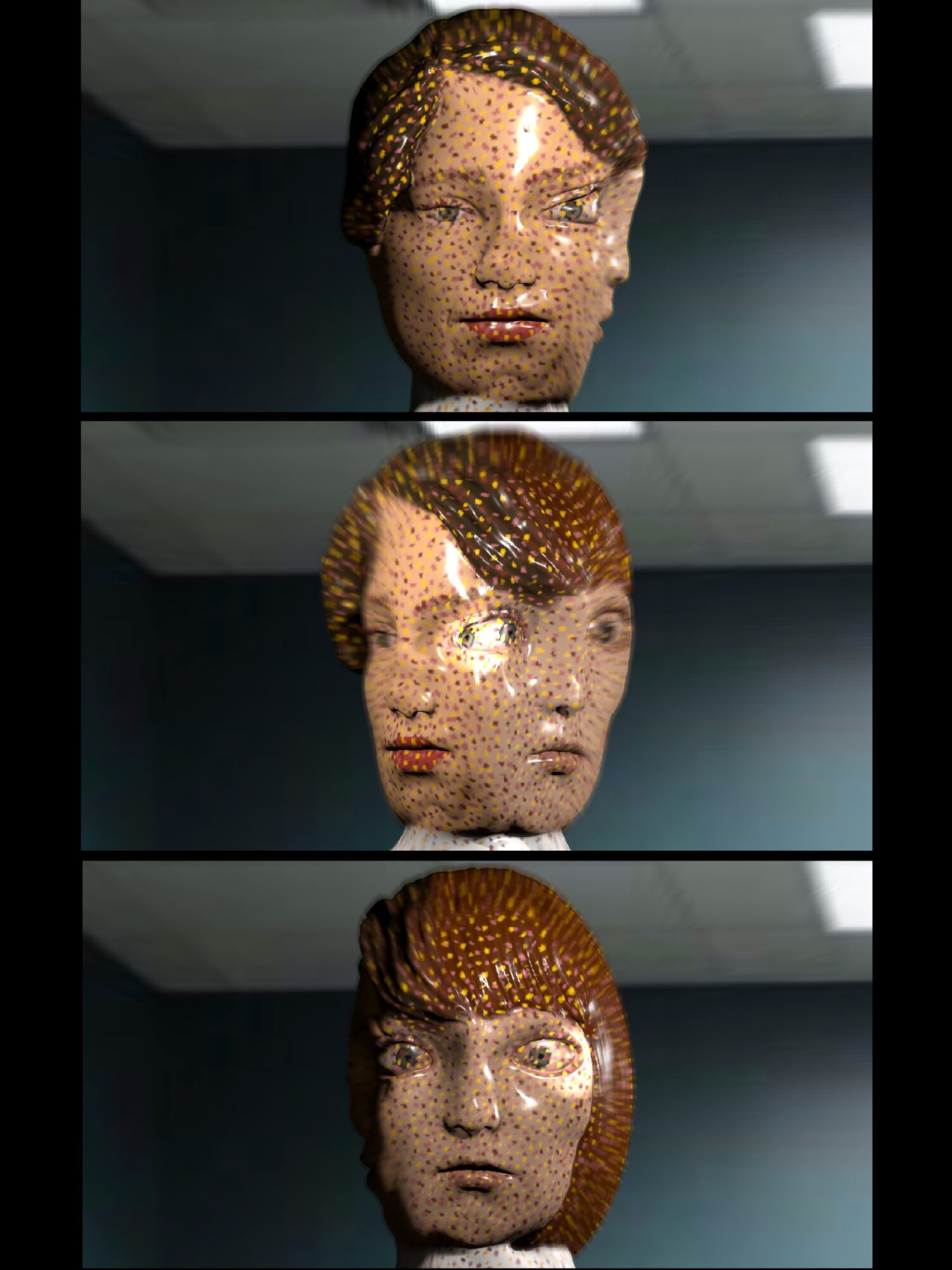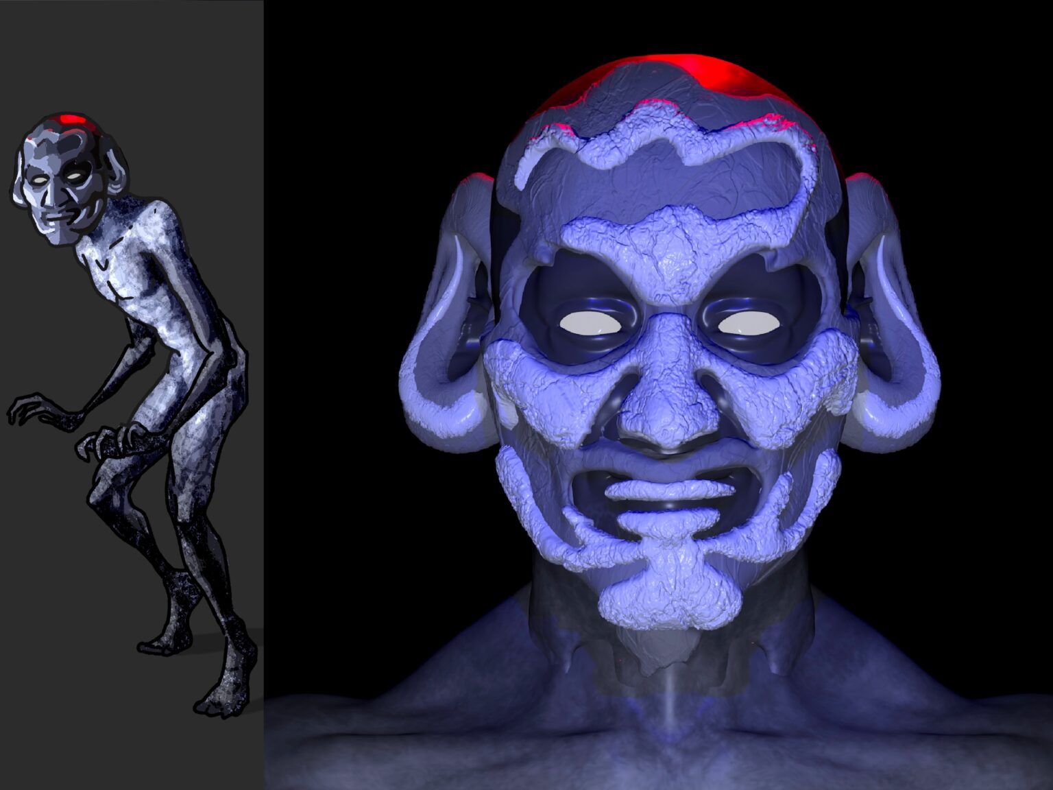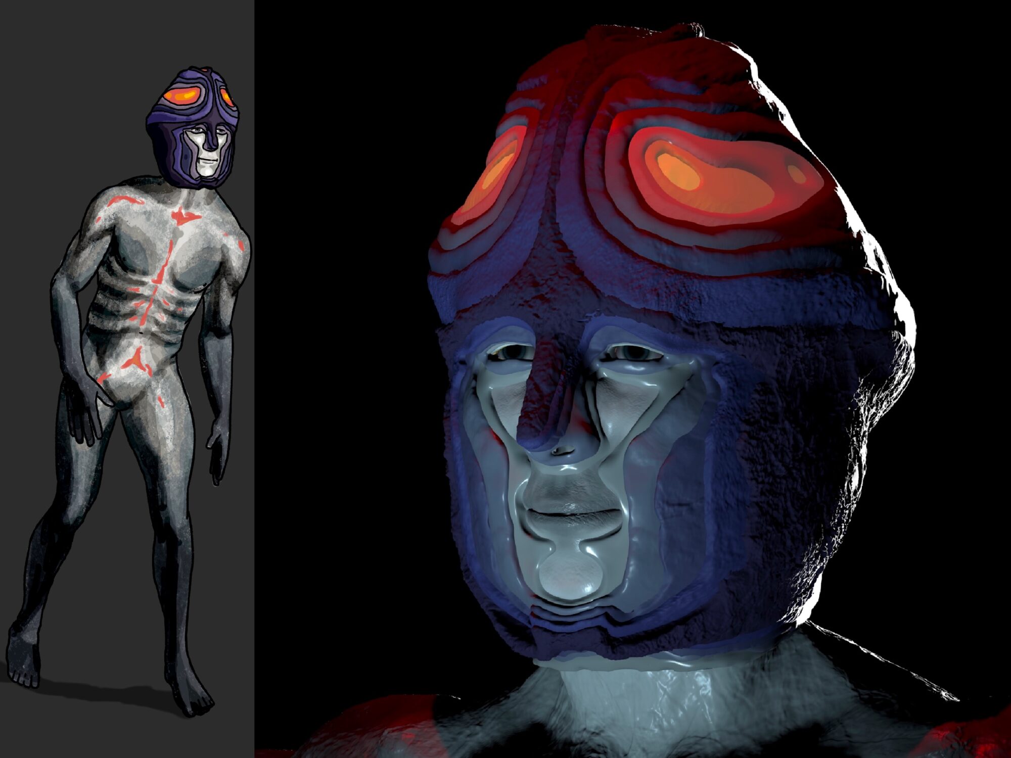 My Major Project is an exploration of findings from my thesis on the effect of the Uncanny Valley in 21st century charcter design. Having observed emerging technologies in areas of augmented reality and brain-computer interfaces I explored how advances in artificial intelligence technology might effect human evolution and present as a character. For this project I looked at the stengthening symbiotic relationship between humans and technology and questions if a human body altered with technology, specifically artificial intelligence, lies in the realm of human or in the uncanny valley. I used a combination of silicone prosthetics and 3d models to create the evolution of a character as her body becomes a vessel for an Ai system to grow, learn and navigate the world.