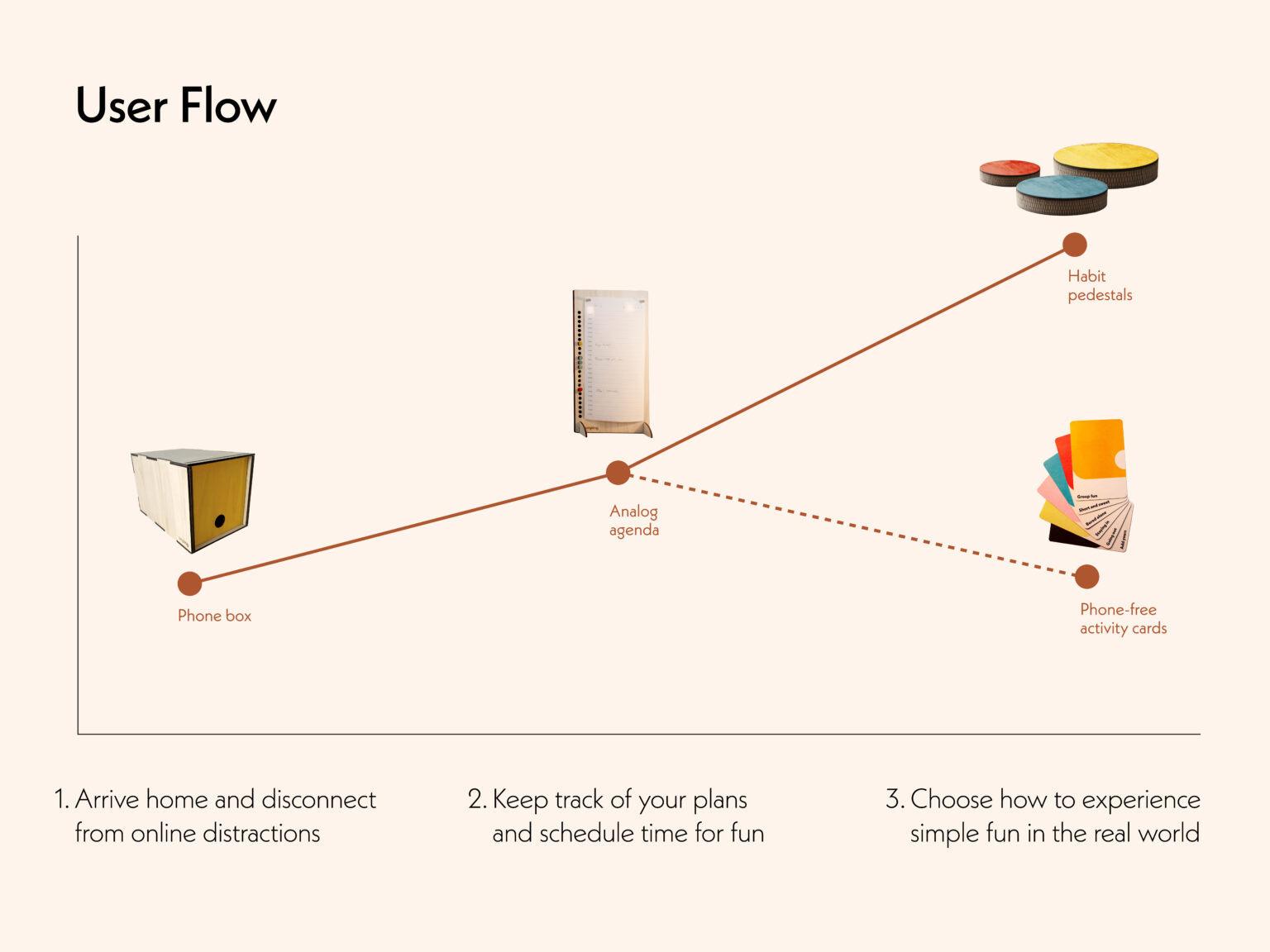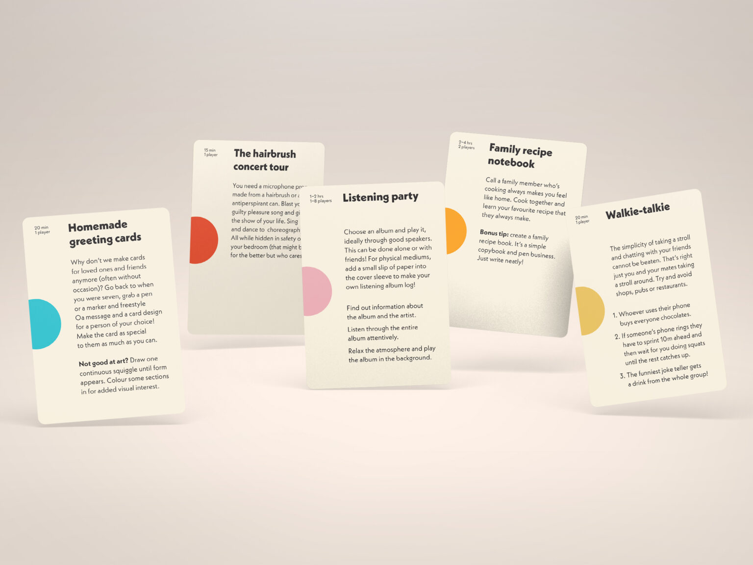 Unping is a system of simple analogue experiences that help people reduce their smartphone use without feeling guilty about it. It is aimed at young adults and adults who use phones as their default form of entertainment. One of my main research findings was that 58% of people spend their free time differently now as compared to the times before they owned a smartphone. Unping normalises disconnecting from the online world as part of having free time. It aims to make real-world, simple, activities rewarding again. Project outcomes can work together as a system, or as stand-alone products, giving people choice over how they choose to "unping" their days.