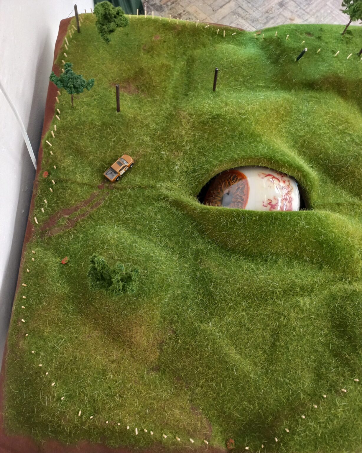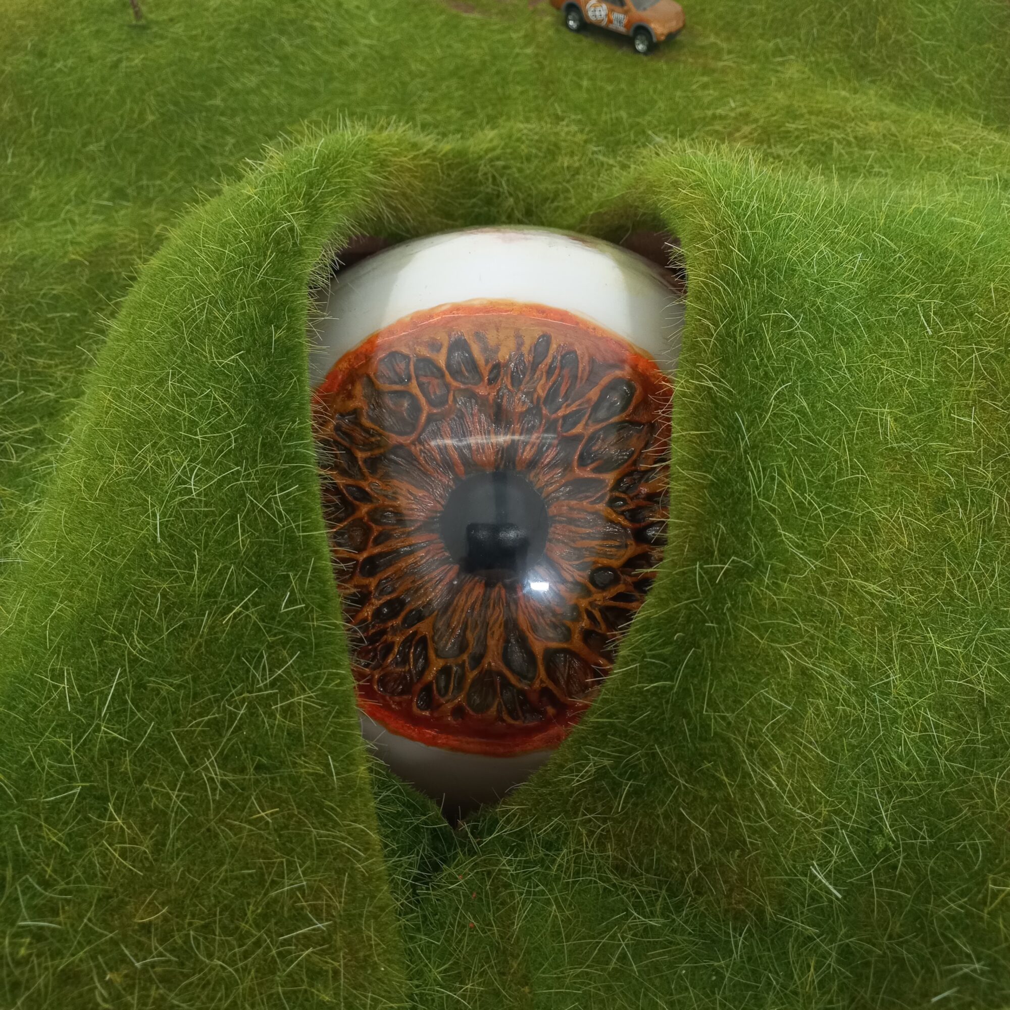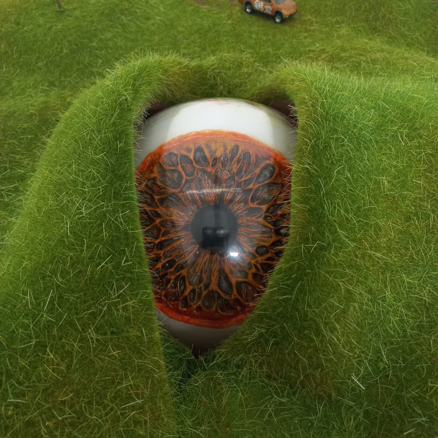 This project was created with the idea of being used as a filming miniature for a film or series. There is a hill near my hometown which every time I passed it, I thought "there is totally something under it" this was the full inspiration for the project and Im so glad I was able to bring the idea to fruition. Now BoB the eyeball can reign terror on the countryside, in reality!