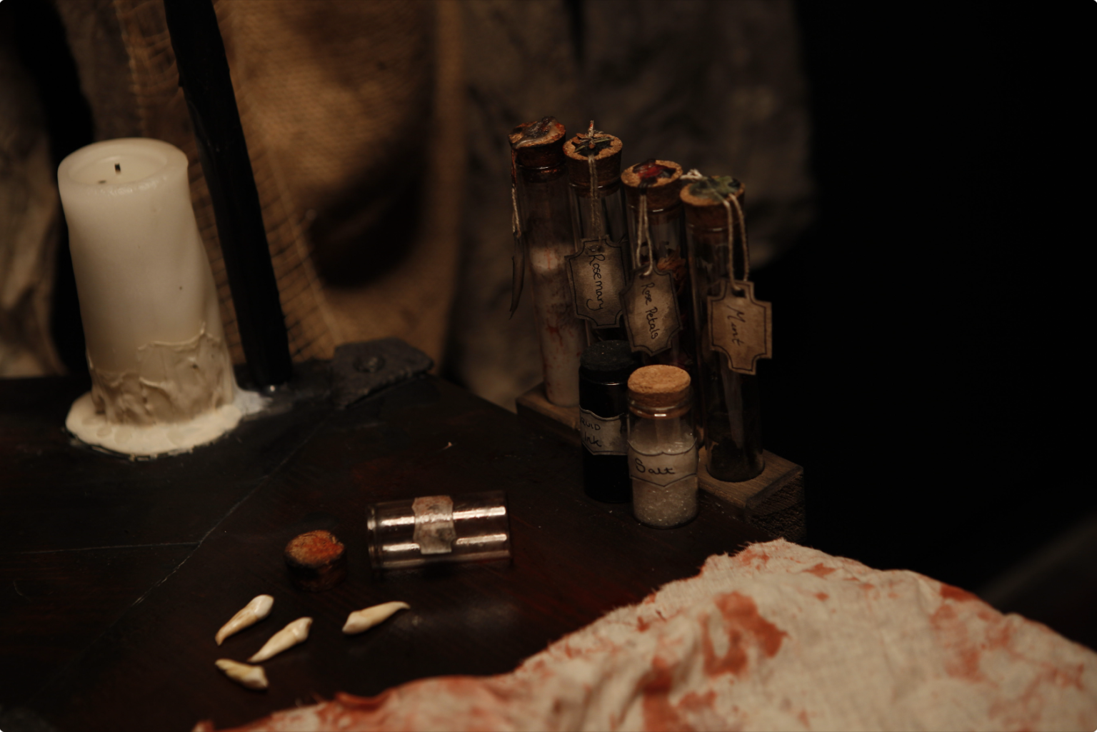 I created things as realistically as I could to help the viewer imagine themselves within a world where witches cauldrons exist, and these witches hunt down humans for potion parts. My hope was to make the viewer of the piece frightened and on edge from the horrible things taking place.
