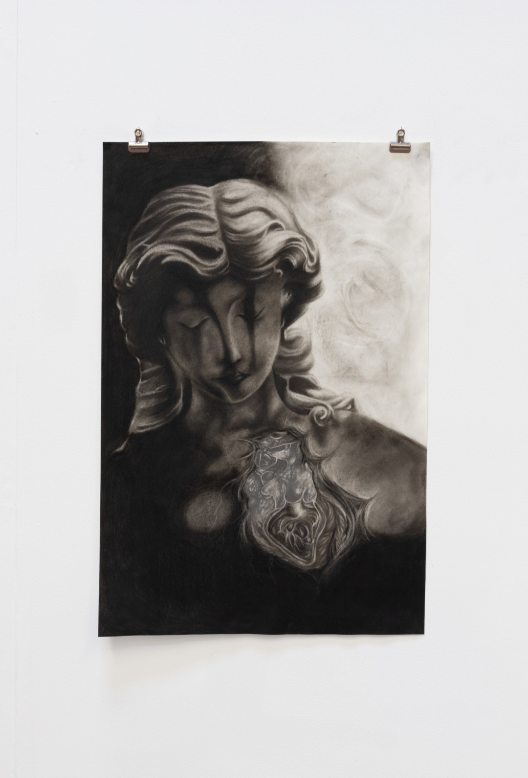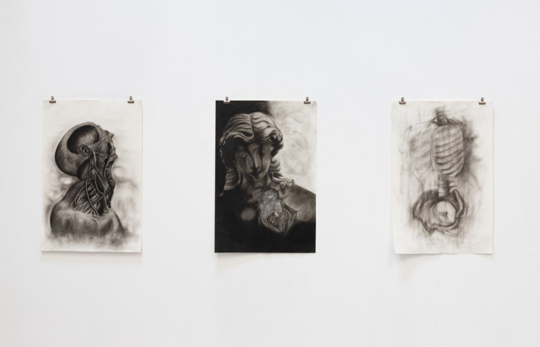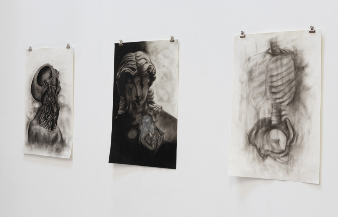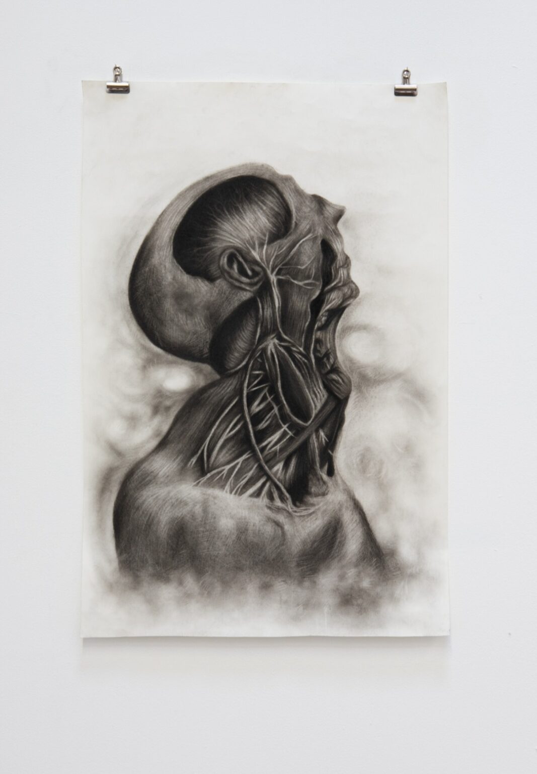 Megan Bass is an artist based in Dublin, Ireland, whose work consists of large charcoal drawings. Her work is primarily influenced by medical art while also being inspired by the concepts of death and decay and how these themes can be portrayed differently in art. She uses these themes in her own artwork as a way of exploring the complex details of the human body. She participated in the IADT Show In The Making: Navel at Pallas Projects (2024).