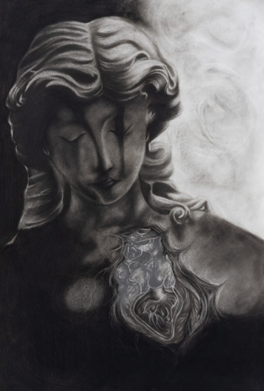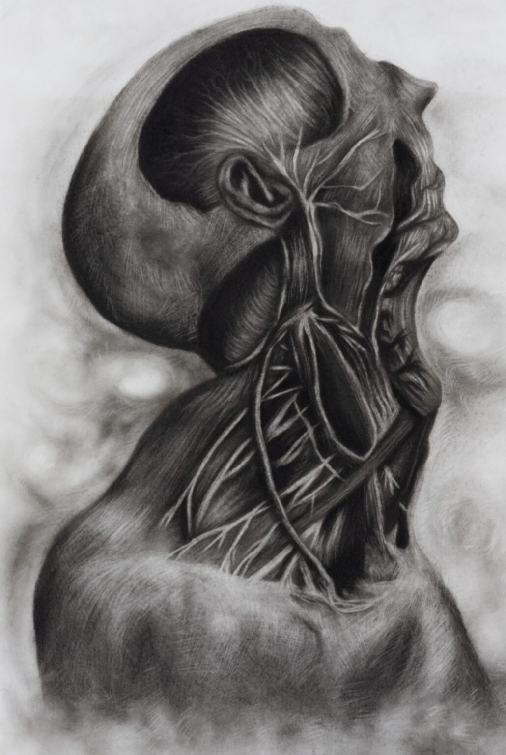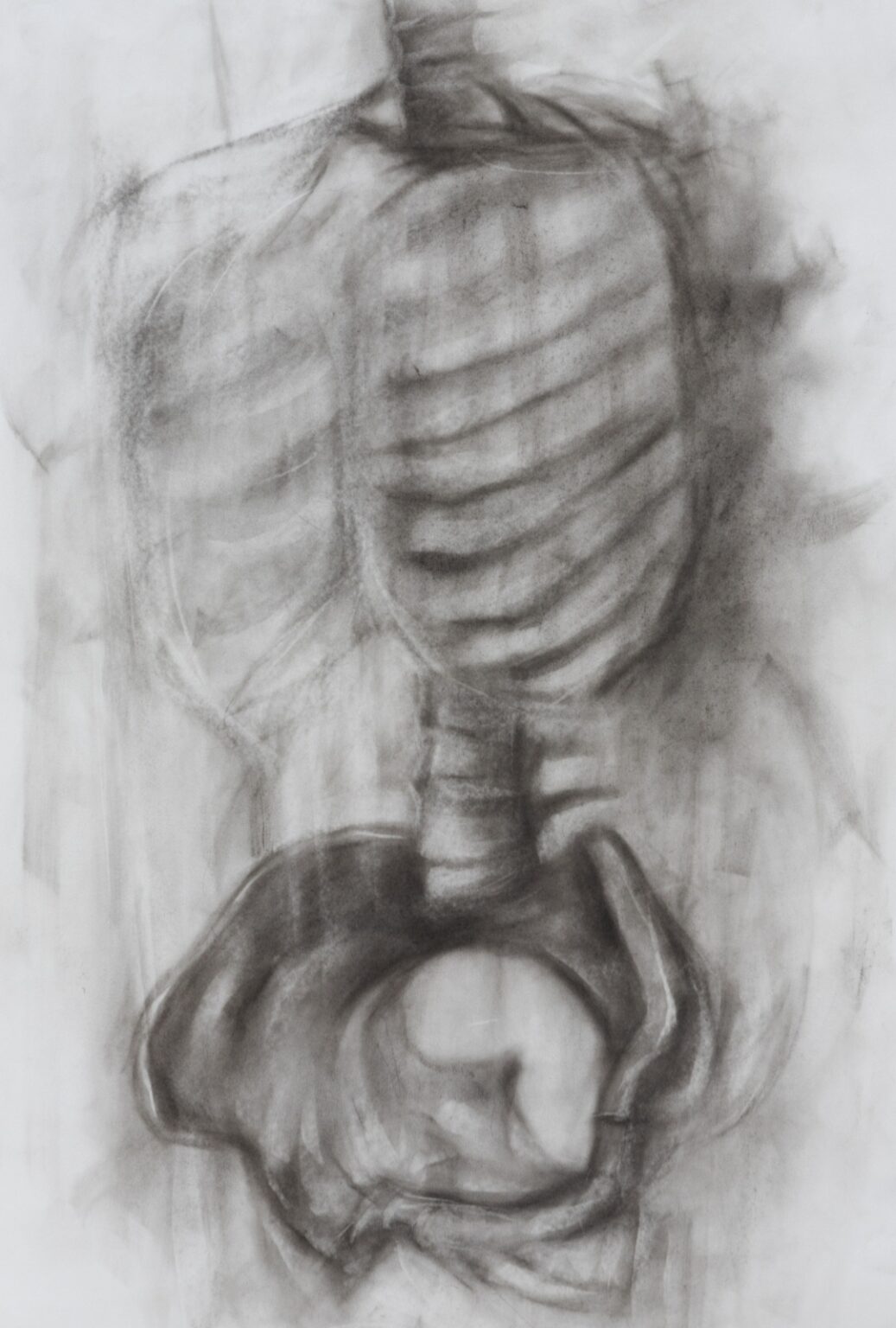 My project focuses on the human body and takes inspiration from medical art. The organic form of the human body has many influences in art as it has many complex shapes and forms, such as the various veins and muscles, and the structure of the skeleton. My work is primarily done in charcoal to achieve a sense of depth while also appreciating the details of the organic matter in the human body portrayed in my art. For my artwork I focus more on the beauty to be found in death and decay, these concepts have many different forms in art, as the human body is its own depiction of life and death.
