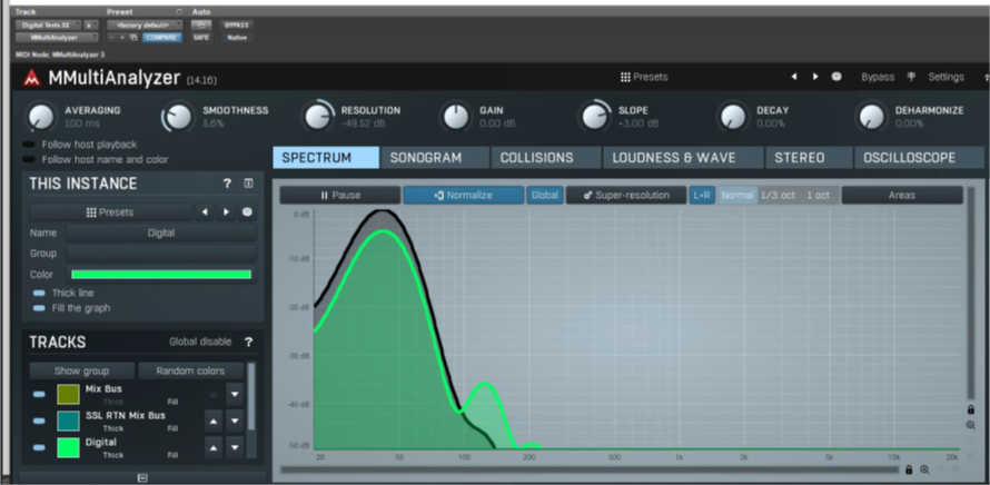 It was deemed that participants couldn't hear the differences between the hardware and software mixes despite more total harmonic distortion being present in hardware signals during Sine Analysis.