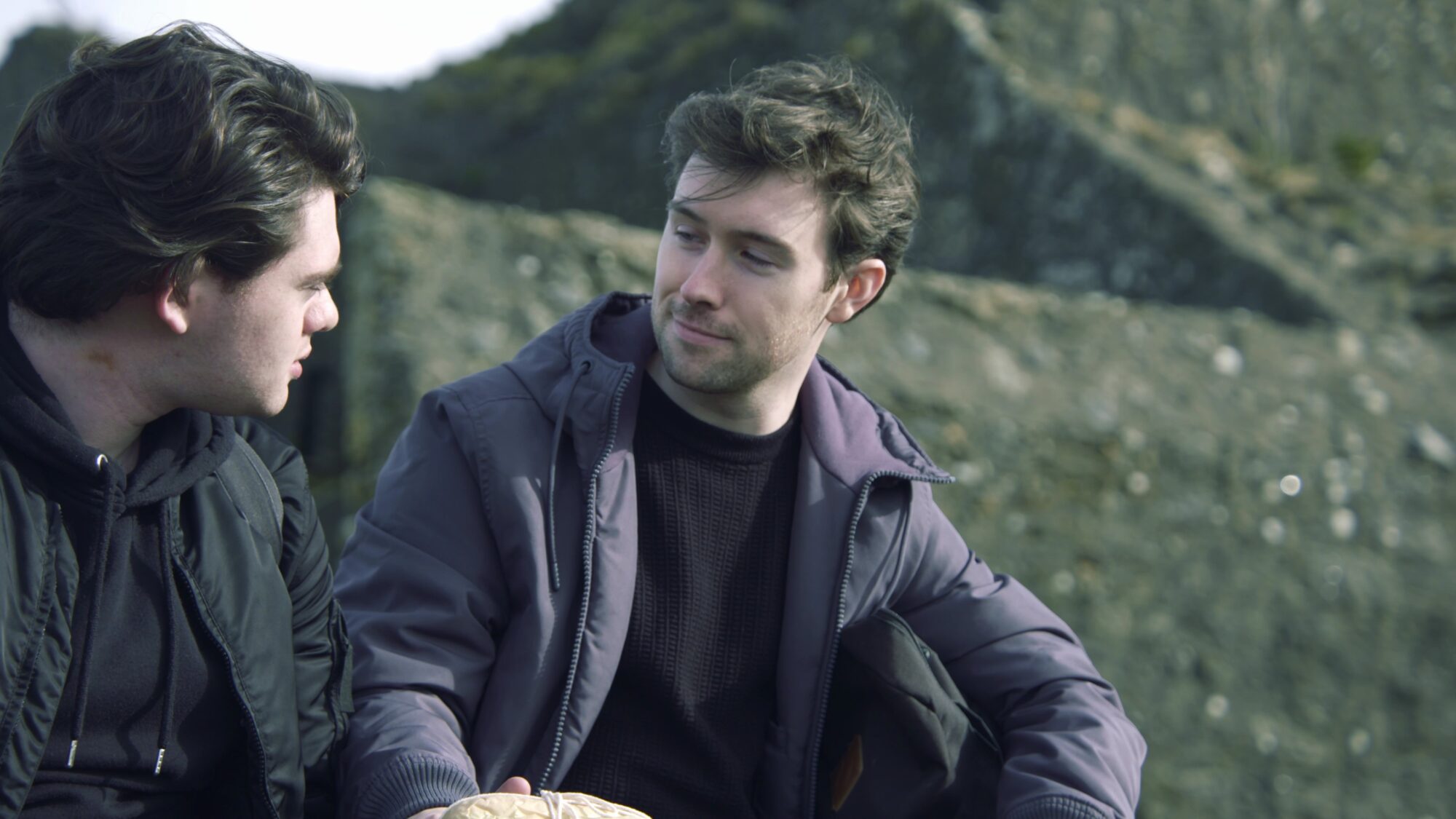 Éabha is a short drama about Ciarán, who is on a hiking date with Michael when he suddenly experiences a regression to a previous life. He feels images of a young woman that start to intensify. While Michael is trying to understand, Ciarán goes deeper into his past life and experiences a woman’s domestic violence and a miscarriage. In the turmoil of this regression, he finds the burial place of the woman’s child and realizes: Not only has the woman lost her child, he has lost his Éabha, too.
