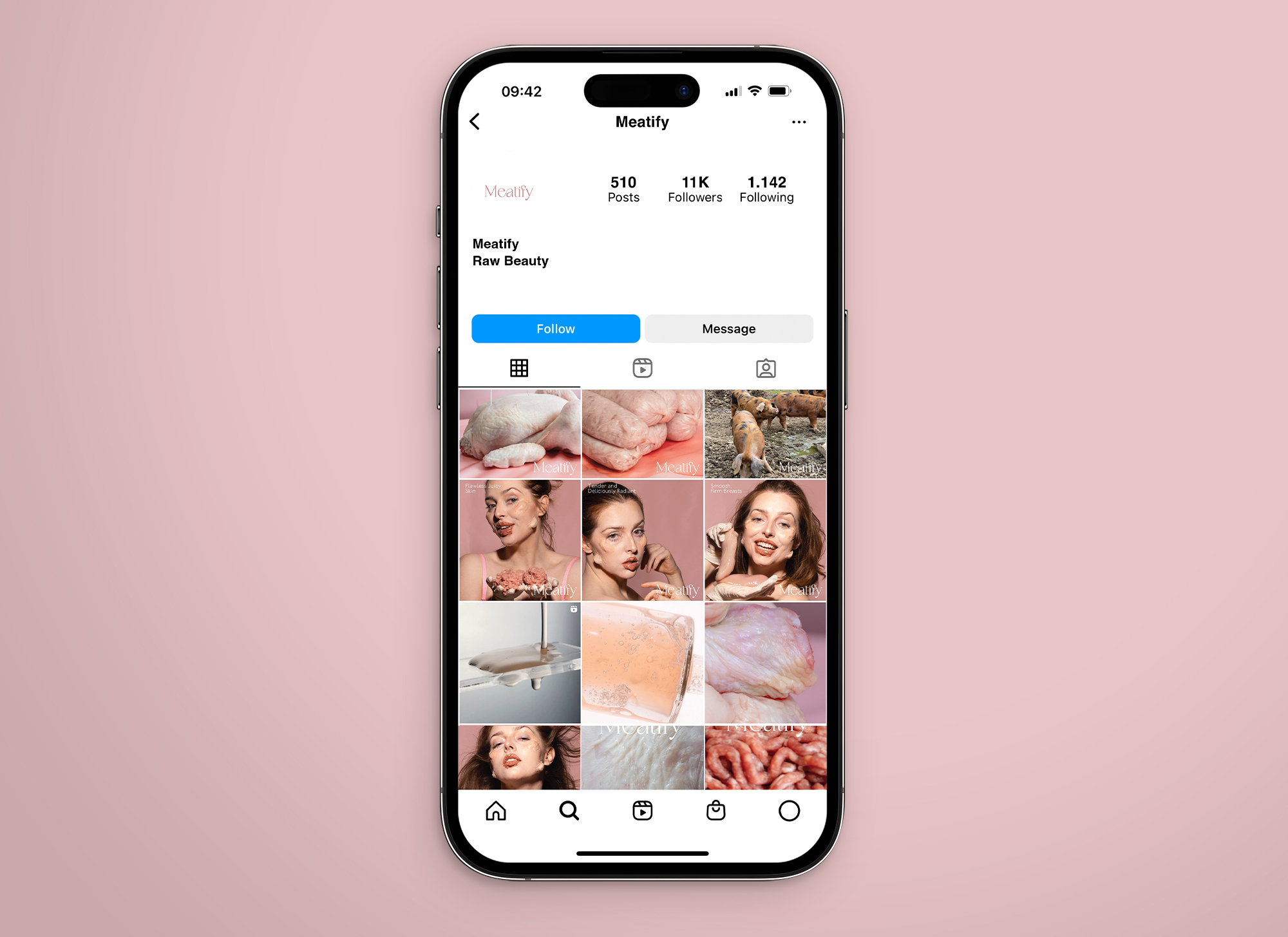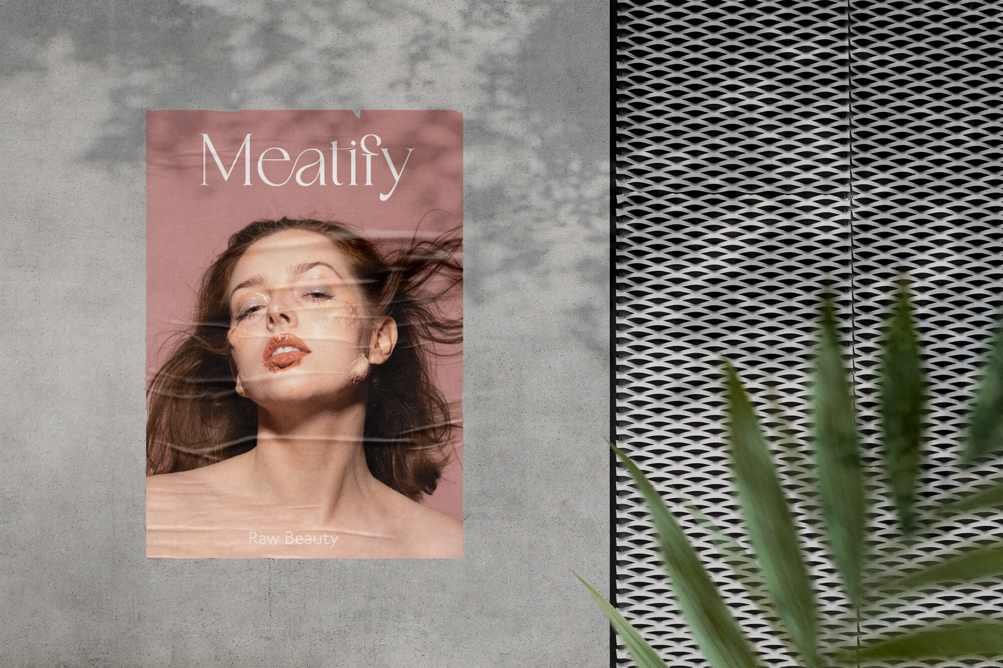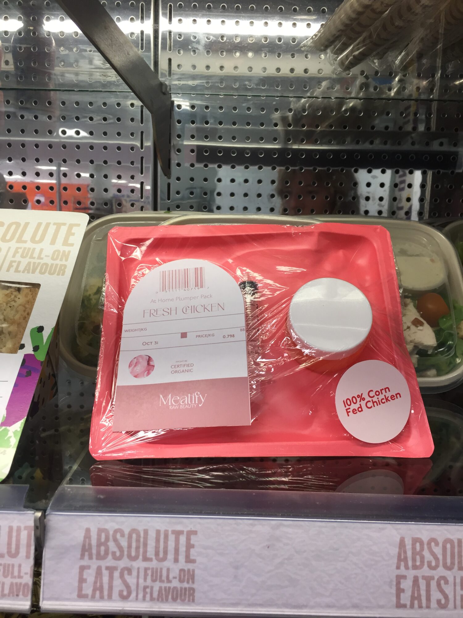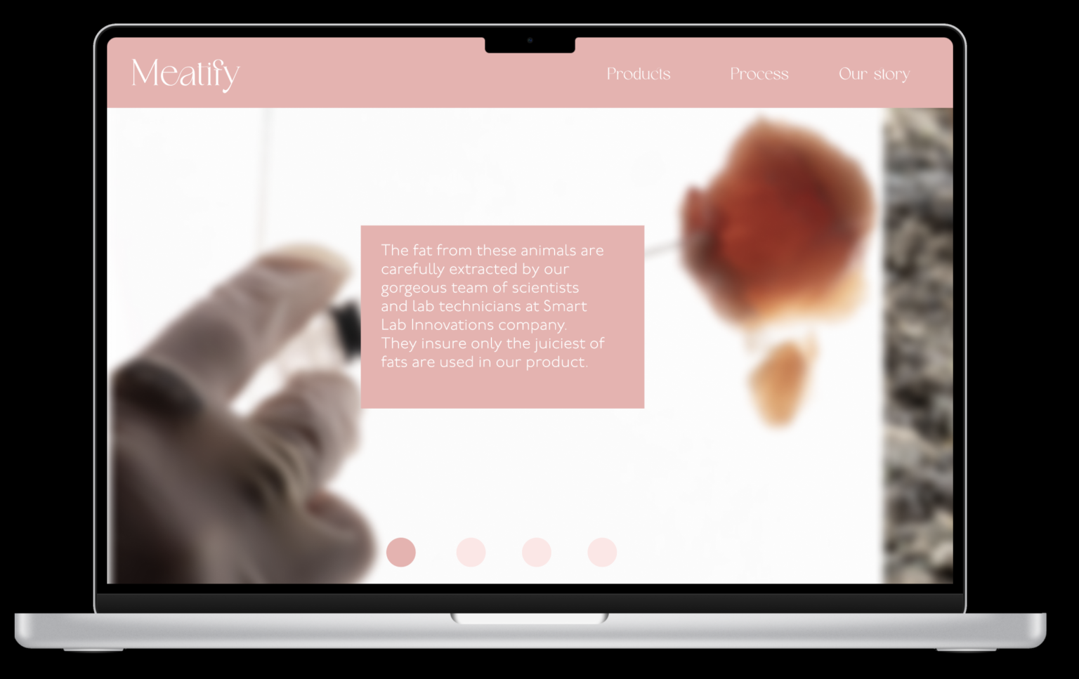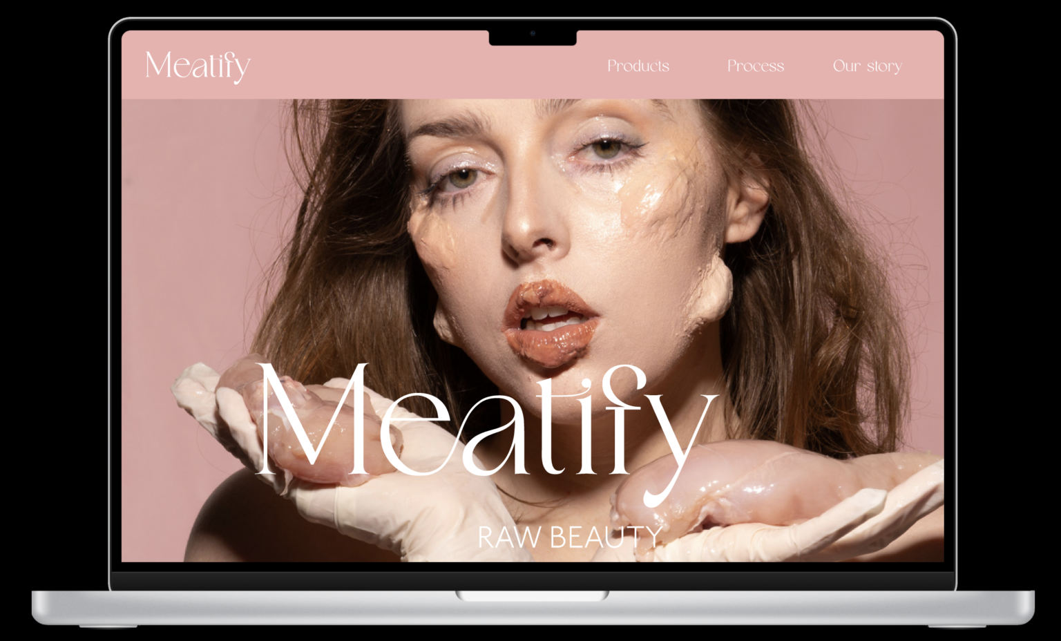 Meatify is a speculative design project aimed at highlighting the deceptive practices of the cosmetic industry — while also shining a light on the ridiculous lengths people will go to change their appearance. The idea stemmed from a stat stating that girls view over 500 ads a day, telling them how they should look. Raw meat was used to show people how convincing the industry can be — by putting a horrific thing in a "beautiful" setting, while contrasted with soft feminine tones. Meatify takes the byproducts from the meat industry and extracts the animal fat to create a natural filler to enhance the face and body.