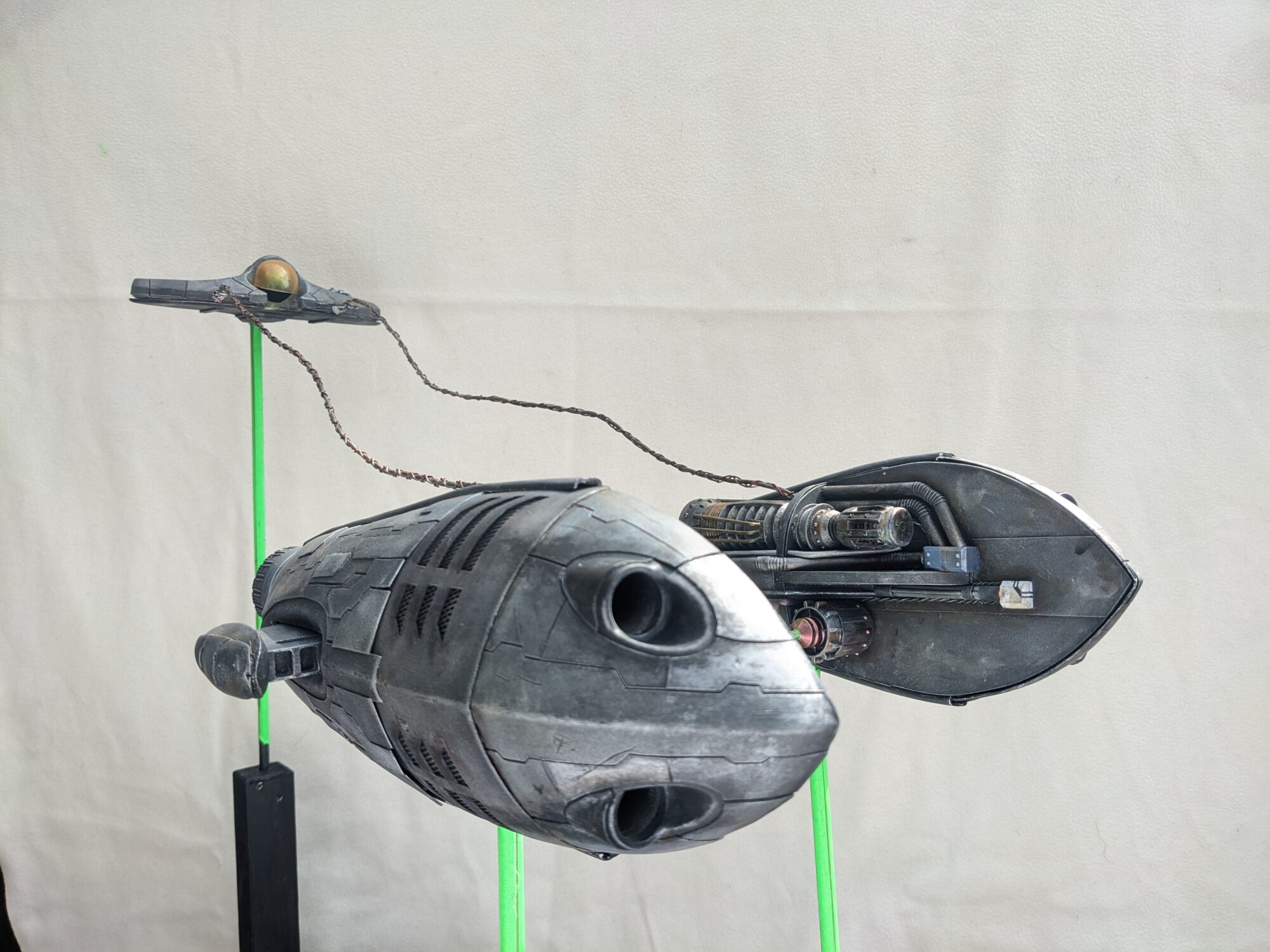 For my final year project I decided to make a shooting miniature model podracer. This style of science fiction racer originated in Star Wars Episode 1: The Phantom Menace. The podracer is designed and piloted by a Mon Calamari named Rilo Wavecrest. From the scrapyards of the planet Dac, Rilo built his podracer to compete against the most fearsome of racers on the Boonta Eve track, lightyears away.